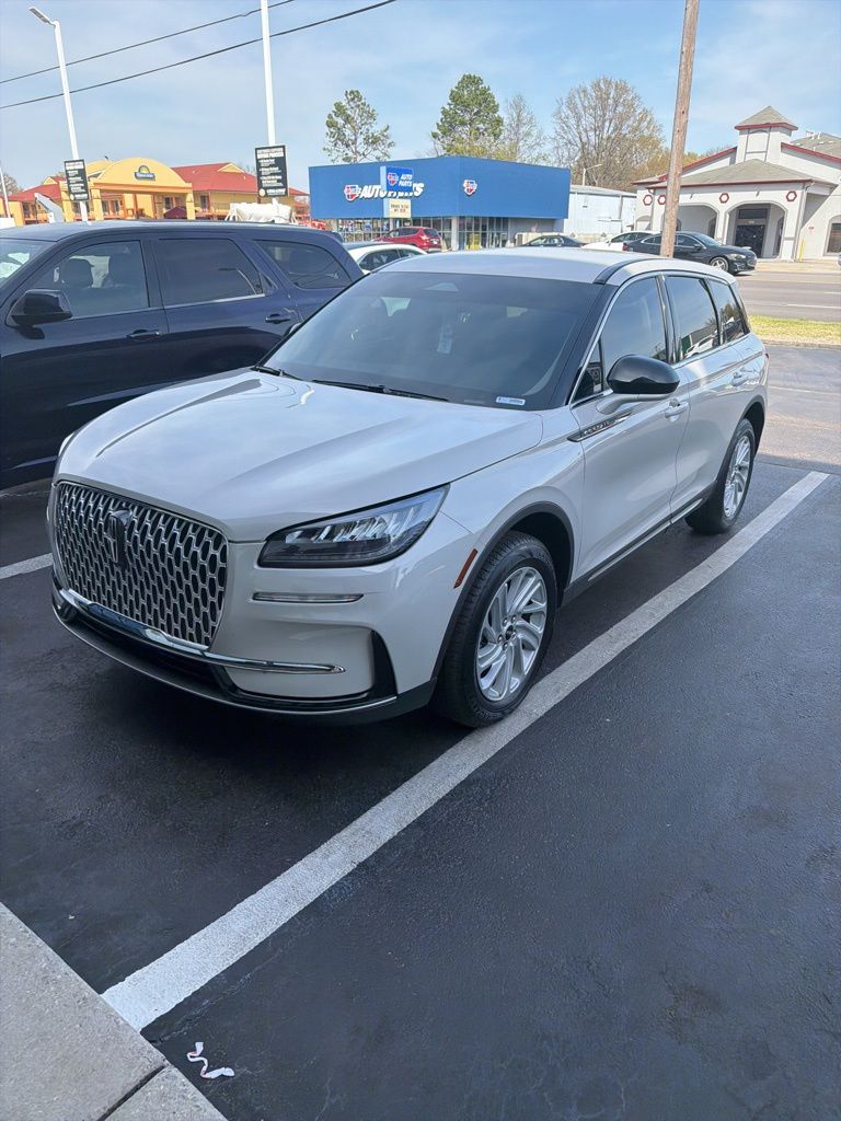 2024 Lincoln Corsair Premiere Certified. Ceramic Pearl Metallic Tri-Coat Premiere FWD 8-Speed Automatic 2.0L I4 Lincoln Certified, 3.81 Axle Ratio, 4-Wheel Disc Brakes, 9 Speakers, ABS brakes, Air Conditioning, Alexa Built-In, Alloy wheels, AM/FM radio: SiriusXM, Apple CarPlay/Android Auto, Auto High-beam Headlights, Auto-dimming Rear-View mirror, Automatic temperature control, Brake assist, Bumpers: body-color, Compass, Delay-off headlights, Driver door bin, Driver vanity mirror, Dual front impact airbags, Dual front side impact airbags, Electronic Stability Control, Emergency communication system: 911 Assist, Equipment Group 100A, Four wheel independent suspension, Front anti-roll bar, Front Bucket Seats, Front Center Armrest, Front dual zone A/C, Front reading lights, Fully automatic headlights, Heated door mirrors, Heated front seats, Illuminated entry, Knee airbag, Lane Departure Warning System, Leather steering wheel, Lincoln Soft Touch Heated Front Captain's Chairs, Low tire pressure warning, Memory seat, Navigation system: Connected Navigation (3-year trial), Occupant sensing airbag, Outside temperature display, Overhead airbag, Overhead console, Panic alarm, Passenger door bin, Passenger vanity mirror, Power door mirrors, Power driver seat, Power Liftgate, Power passenger seat, Power steering, Power windows, Radio data system, Radio: Lincoln Premium Audio System w/MP3, Rear anti-roll bar, Rear Parking Sensors, Rear reading lights, Rear seat center armrest, Rear window defroster, Rear window wiper, Remote keyless entry, Security system, SiriusXM Radio, Speed control, Speed-sensing steering, Speed-Sensitive Wipers, Split folding rear seat, Spoiler, Steering wheel mounted A/C controls, Steering wheel mounted audio controls, SYNC 4 Communications & Entertainment System, Tachometer, Telescoping steering wheel, Tilt steering wheel, Traction control, Trip computer, Variably intermittent wipers, Wheels: 18" Warm Painted Alloy.