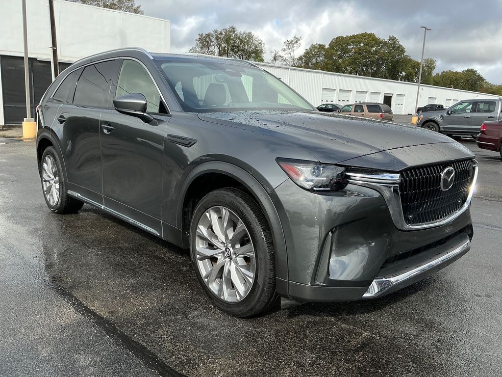 2024 Mazda CX-90 3.3 Turbo Premium Machine Gray Metallic 3.3 Turbo Premium AWD 8-Speed Automatic I6 Turbo 12 Speakers, 3.692 Axle Ratio, 3rd row seats: bench, 4-Wheel Disc Brakes, ABS brakes, Air Conditioning, Alloy wheels, AM/FM radio: SiriusXM, Auto High-beam Headlights, Auto-dimming Rear-View mirror, Automatic temperature control, Brake assist, Bumpers: body-color, Compass, Delay-off headlights, Driver door bin, Driver vanity mirror, Dual front impact airbags, Dual front side impact airbags, E911 Automatic Emergency Notification, Electronic Stability Control, Emergency communication system: MAZDA CONNECT, Exterior Parking Camera Rear, Four wheel independent suspension, Front anti-roll bar, Front Bucket Seats, Front Center Armrest w/Storage, Front dual zone A/C, Front reading lights, Fully automatic headlights, Garage door transmitter: HomeLink, Heads-Up Display, Heated door mirrors, Heated Front Bucket Seats, Heated front seats, Illuminated entry, Infotainment System Voice Command, Knee airbag, Leather Seat Trim, Leather Shift Knob, Leather steering wheel, Low tire pressure warning, Machine Gray Metallic Paint Charge, Mazda Connected Services, Mazda Navigation System, Memory seat, Navigation system: MAZDA CONNECT, Occupant sensing airbag, Outside temperature display, Overhead airbag, Overhead console, Pandora Internet Radio Integration, Panic alarm, Passenger door bin, Passenger vanity mirror, Power door mirrors, Power driver seat, Power Liftgate, Power moonroof, Power passenger seat, Power steering, Power windows, Radio Broadcast Data System Program Information, Radio data system, Radio: AM/FM w/Bose Audio Sound System, Rain sensing wipers, Rear air conditioning, Rear anti-roll bar, Rear reading lights, Rear window defroster, Rear window wiper, Remote keyless entry, SMS Text Msg Audio Delivery & Reply, Speed control, Speed-sensing steering, Split folding rear seat, Spoiler, Steering wheel mounted audio controls, Tachometer, Telescoping steering wheel, Tilt steering wheel, Traction control, Trip computer, Turn signal indicator mirrors, Variably intermittent wipers, Wheels: 21" x 9.5J Aluminum Alloy.