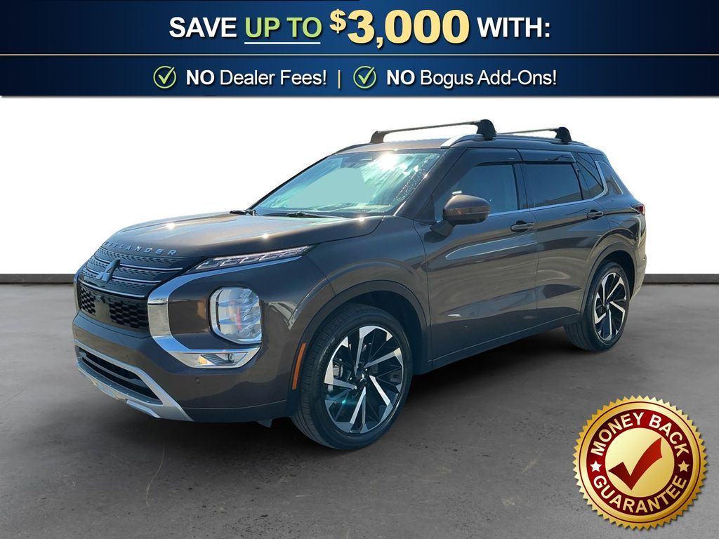 2022 Mitsubishi Outlander SEL Deep Bronze Metallic SEL FWD CVT 2.5L 4-Cylinder DOHC 3rd row seats: split-bench, 4-Wheel Disc Brakes, 6 Speakers, ABS brakes, Air Conditioning, Alloy wheels, AM/FM radio: SiriusXM, Android Auto & Apple CarPlay, Auto High-beam Headlights, Auto-dimming Rear-View mirror, Automatic temperature control, Axle Ratio: 5.694, Brake assist, Bumpers: body-color, Driver door bin, Driver vanity mirror, Dual front impact airbags, Dual front side impact airbags, Electronic Stability Control, Emergency communication system: Mitsubishi Connect w/ 24-month trial, Four wheel independent suspension, Front anti-roll bar, Front Bucket Seats, Front Center Armrest w/Storage, Front dual zone A/C, Front fog lights, Front reading lights, Fully automatic headlights, Heated door mirrors, Heated Front Bucket Seats, Heated front seats, Illuminated entry, Knee airbag, Leather Seat Trim, Leather Shift Knob, Leather steering wheel, Low tire pressure warning, Memory seat, Navigation system: Powered by TOMTOM, Occupant sensing airbag, Outside temperature display, Overhead airbag, Overhead console, Panic alarm, Passenger door bin, Passenger vanity mirror, Power door mirrors, Power driver seat, Power Liftgate, Power passenger seat, Power steering, Power windows, Radio data system, Radio: AM/FM 9.0" Navigation w/Smartphone Link, Rain sensing wipers, Rear air conditioning, Rear anti-roll bar, Rear seat center armrest, Rear side impact airbag, Rear window defroster, Rear window wiper, Reclining 3rd row seat, Remote keyless entry, Roof rack: rails only, Security system, Speed control, Speed-Sensitive Wipers, Split folding rear seat, Spoiler, Steering wheel mounted audio controls, Tachometer, Telescoping steering wheel, Tilt steering wheel, Traction control, Trip computer, Turn signal indicator mirrors, Variably intermittent wipers, Wheels: 20" x 8J Two-Tone Alloy.