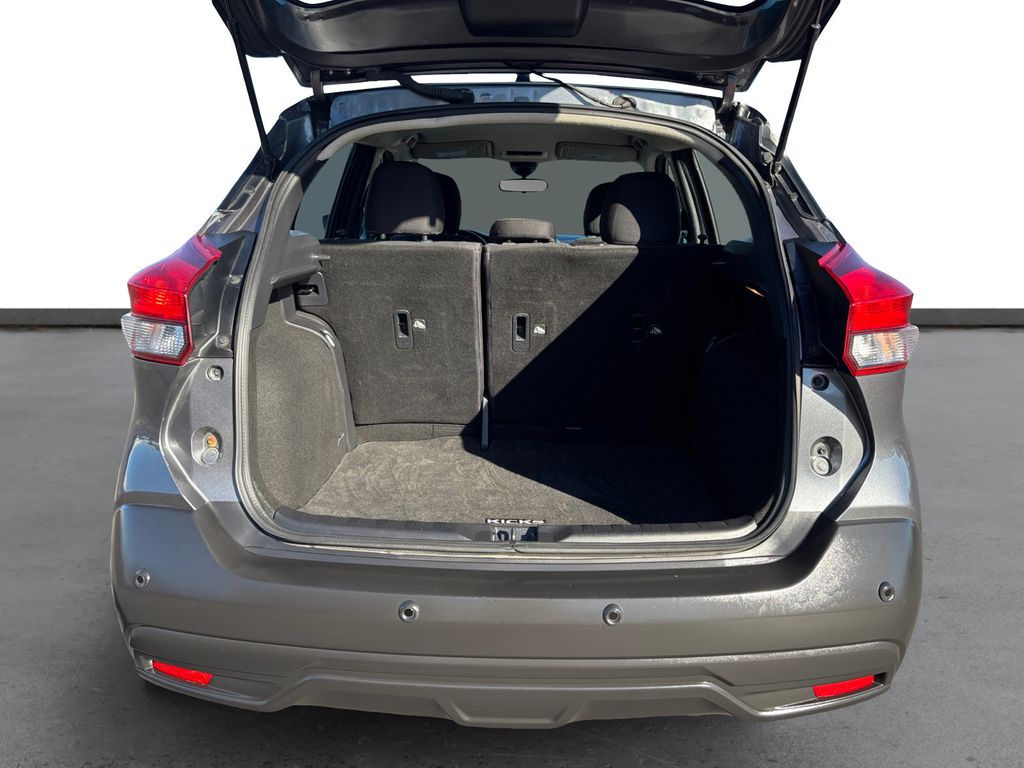 2020 Nissan Kicks S Gun Metallic S FWD CVT with Xtronic 1.6L 4-Cylinder DOHC 16V 16" Steel Wheels w/Full Covers, 3.927 Axle Ratio, 6 Speakers, ABS brakes, Air Conditioning, AM/FM radio, Auto High-beam Headlights, Blind Spot Warning, Brake assist, Bumpers: body-color, Carpeted Floor Mats w/Cargo Mat, Cloth Seat Trim, Driver door bin, Driver vanity mirror, Driver's Seat Mounted Armrest, Dual front impact airbags, Dual front side impact airbags, Electronic Stability Control, Front anti-roll bar, Front Bucket Seats, Front reading lights, Front wheel independent suspension, Fully automatic headlights, Illuminated entry, Knee airbag, Low tire pressure warning, Occupant sensing airbag, Outside temperature display, Overhead airbag, Panic alarm, Passenger door bin, Passenger vanity mirror, Power door mirrors, Power steering, Power windows, Radio data system, Radio: AM/FM Audio System, Rear Parking Sensors, Rear reading lights, Rear side impact airbag, Rear window defroster, Rear window wiper, Remote keyless entry, Speed control, Splash Guards Grain (4 Piece), Split folding rear seat, Sport steering wheel, Steering wheel mounted audio controls, Tachometer, Telescoping steering wheel, Tilt steering wheel, Traction control, Trip computer, Variably intermittent wipers.