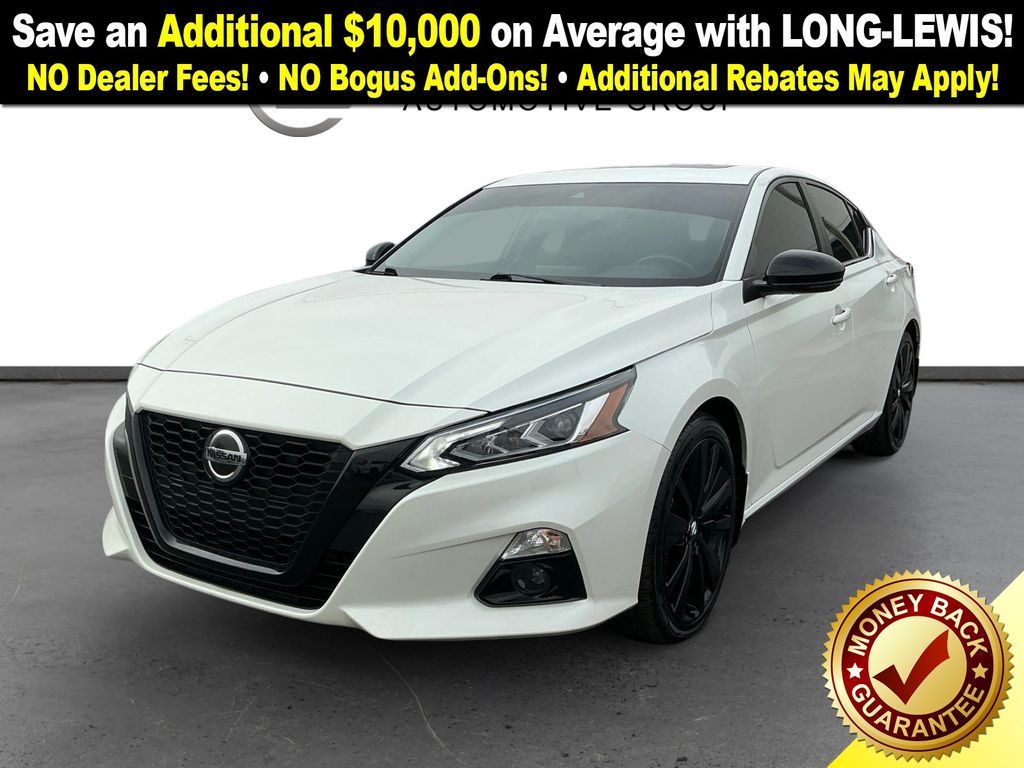 2022 Nissan Altima 2.5 SR Pearl White Tricoat 2.5 SR FWD CVT with Xtronic 2.5L 4-Cylinder DOHC 16V CVT with Xtronic, 4-Wheel Disc Brakes, 6 Speakers, ABS brakes, Air Conditioning, Alloy wheels, AM/FM radio: SiriusXM, Auto High-beam Headlights, Blind Spot Warning, Body-Colored Splash Guards, Brake assist, Bumpers: body-color, Chrome Bumper Protector, Delay-off headlights, Driver door bin, Driver vanity mirror, Dual front impact airbags, Dual front side impact airbags, Electronic Stability Control, Emergency Roadside Kit Delete, Four wheel independent suspension, Front anti-roll bar, Front Bucket Seats, Front Center Armrest, Front reading lights, Front Sport Bucket Seats, Fully automatic headlights, Gloss Black Painted Spoiler, Gloss Black Painted V-Motion Grille, Heated Front Seats, Heated Outside Mirrors w/LED Turn Signal Indicators, Illuminated entry, Knee airbag, Leather Shift Knob, LED Fog Lights, Low tire pressure warning, Midnight Edition Package, NissanConnect featuring Apple CarPlay and Android Auto, Occupant sensing airbag, Outside temperature display, Overhead airbag, Overhead console, Panic alarm, Passenger door bin, Passenger vanity mirror, Power door mirrors, Power driver seat, Power steering, Power windows, Radio data system, Radio: AM/FM Audio System, Rear anti-roll bar, Rear Parking Sensors, Rear reading lights, Rear seat center armrest, Rear side impact airbag, Rear window defroster, Remote keyless entry, Security system, Single Panel Moonroof, Speed control, Speed-sensing steering, Speed-Sensitive Wipers, Split folding rear seat, Sport Seat Trim, Sport steering wheel, SR Floor Mats/Trunk Mat/Hideaway Nets, Steering wheel mounted audio controls, Tachometer, Telescoping steering wheel, Tilt steering wheel, Traction control, Trip computer, Trunk Organizer Tray, Variably intermittent wipers, Wheels: 19" Gloss Black Painted, Wheels: 19" Machined Alloy, CVT with Xtronic.