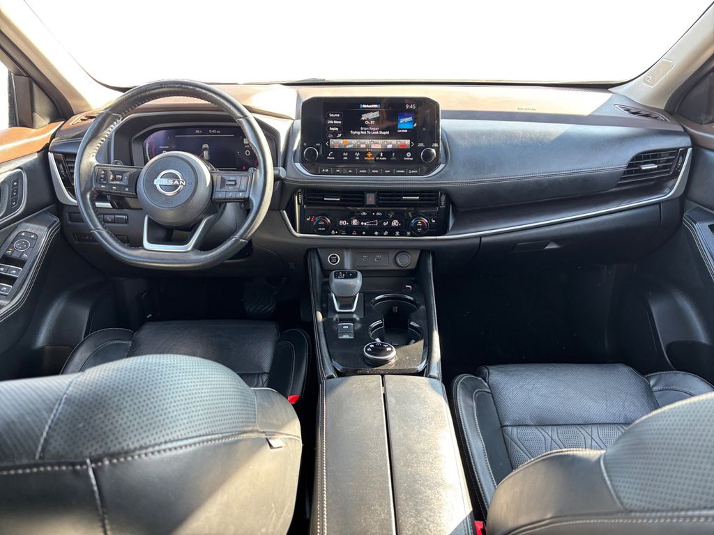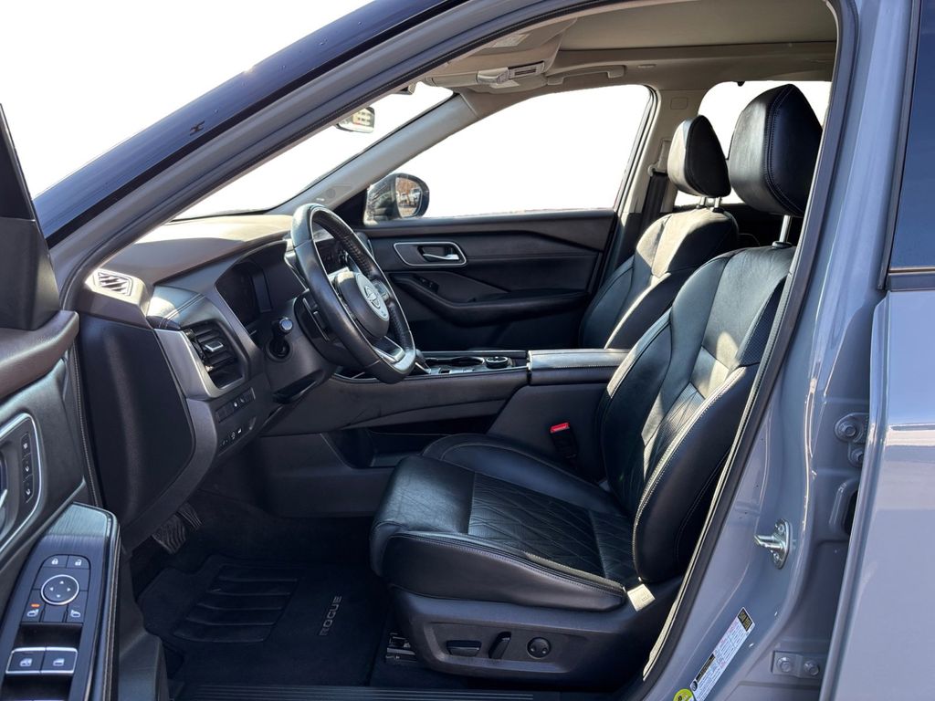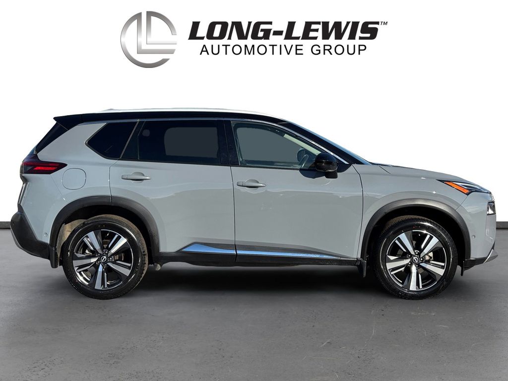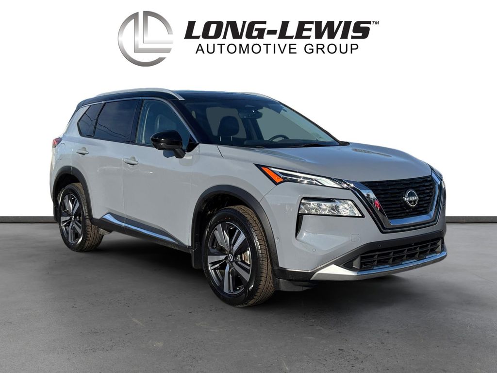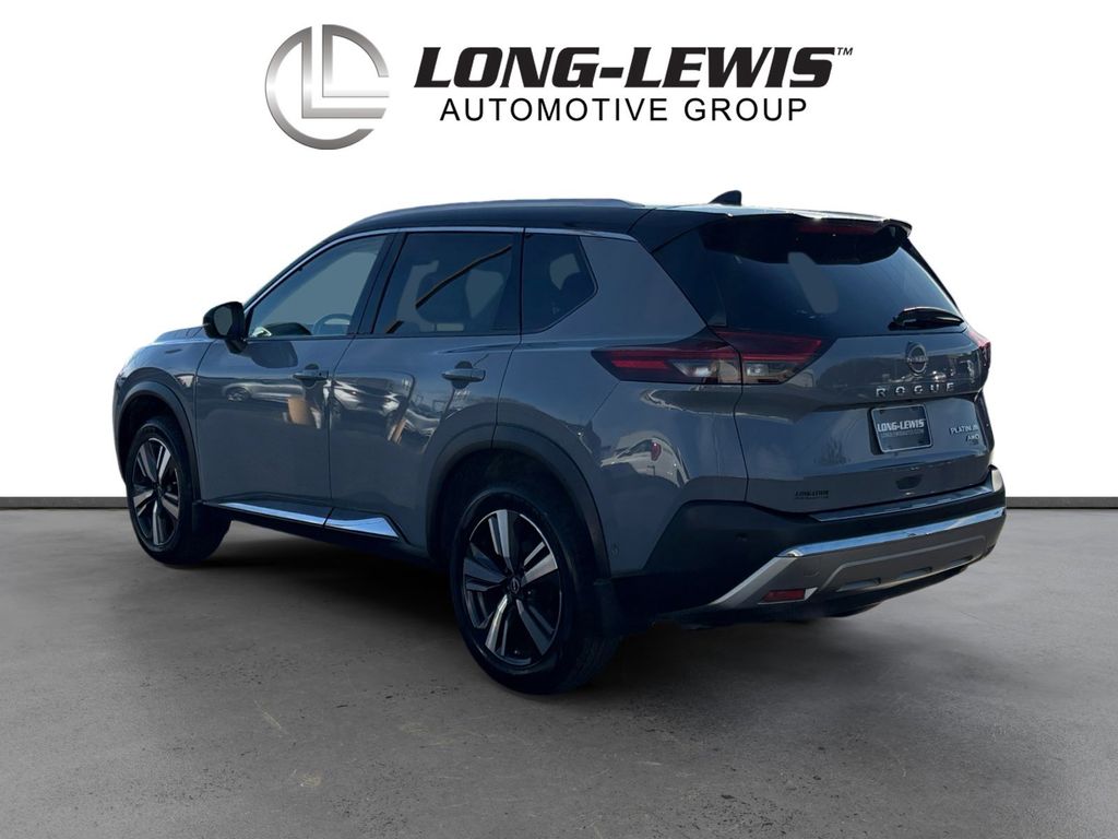 2023 Nissan Rogue Platinum Boulder Gray Pearl/Super Black Platinum AWD CVT with Xtronic 1.5L I3 Turbocharged DOHC 12V LEV3-ULEV50 201hp AWD, 10 Speakers, 19" Aluminum Alloy Wheels, 4-Wheel Disc Brakes, 5.604 Axle Ratio, ABS brakes, Air Conditioning, Alloy wheels, AM/FM radio: SiriusXM, Auto High-beam Headlights, Auto-dimming Rear-View mirror, Automatic temperature control, Black Splash Guards (Set of 4), Bose Premium Audio System, Brake assist, Bumpers: body-color, Chrome Rear Bumper Protector, Delay-off headlights, Driver door bin, Driver vanity mirror, Dual front impact airbags, Dual front side impact airbags, Electronic Stability Control, Emergency communication system: NissanConnect Services, External Ground Lighting, First Aid Kit, Floor Mats w/2-Piece Cargo Area Protector, Four wheel independent suspension, Frameless Rearview Mirror w/Universal Remote, Front anti-roll bar, Front Bucket Seats, Front Center Armrest, Front dual zone A/C, Front reading lights, Fully automatic headlights, Heads-Up Display, Heated door mirrors, Heated Front Bucket Seats, Heated front seats, Heated steering wheel, Illuminated entry, Illuminated Kick Plates, Knee airbag, Leather steering wheel, Low tire pressure warning, Memory seat, Navigation system: NissanConnect Navigation, NissanConnect featuring Apple CarPlay and Android Auto, Occupant sensing airbag, Outside temperature display, Overhead airbag, Overhead console, Panic alarm, Passenger door bin, Passenger vanity mirror, Platinum Premium Package, Power door mirrors, Power driver seat, Power Liftgate, Power moonroof, Power passenger seat, Power steering, Power windows, Quilted Semi-Aniline Leather Seat Trim, Radio data system, Radio: AM/FM NissanConnect w/Navigation, Rear anti-roll bar, Rear Heated Seats, Rear reading lights, Rear seat center armrest, Rear side impact airbag, Rear window defroster, Rear window wiper, Remote keyless entry, Retractable Cargo Cover, Security system, Speed control, Speed-Sensitive Wipers, Split folding rear seat, Spoiler, Steering wheel mounted audio controls, Tachometer, Telescoping steering wheel, Tilt steering wheel, Traction control, Tri-Zone HVAC, Trip computer, Turn signal indicator mirrors, USB Charging Cable Set - Nissan, Variably intermittent wipers, AWD.