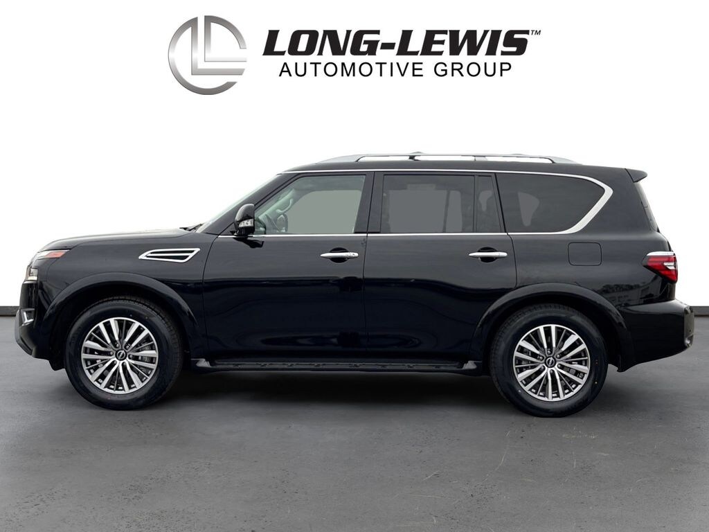 2024 Nissan Armada SL Super Black SL 4WD 7-Speed Automatic 5.6L V8 DOHC 32V LEV3-ULEV125 400hp 4WD, 13 Speakers, 2.937 Axle Ratio, 3rd Row Carpeted Floor Mats - Bench Seat, 3rd row seats: split-bench, 4-Wheel Disc Brakes, ABS brakes, Air Conditioning, Alloy wheels, AM/FM radio: SiriusXM, Anti-whiplash front head restraints, Auto High-beam Headlights, Auto tilt-away steering wheel, Auto-dimming door mirrors, Auto-dimming Rear-View mirror, Auto-leveling suspension, Automatic temperature control, Brake assist, Bumpers: body-color, Cargo Package, Delay-off headlights, Driver door bin, Driver vanity mirror, Dual front impact airbags, Dual front side impact airbags, Electronic Stability Control, Emergency communication system: NissanConnect Services, Exterior Parking Camera Rear, Four wheel independent suspension, Front anti-roll bar, Front Bucket Seats, Front Center Armrest, Front dual zone A/C, Front fog lights, Front reading lights, Fully automatic headlights, Garage door transmitter: HomeLink, Heated door mirrors, Heated Front Bucket Seats, Heated front seats, Heated steering wheel, HVAC memory, Illuminated entry, Illuminated Kick Plates, Knee airbag, Leather Shift Knob, Leather steering wheel, Leather-Appointed Seat Trim, Low tire pressure warning, Memory seat, Navigation System, Occupant sensing airbag, Outside temperature display, Overhead airbag, Overhead console, Panic alarm, Passenger door bin, Passenger vanity mirror, Power door mirrors, Power driver seat, Power Liftgate, Power moonroof, Power passenger seat, Power steering, Power windows, Radio: NissanConnect w/SiriusXM, Rear air conditioning, Rear anti-roll bar, Rear reading lights, Rear seat center armrest, Rear window defroster, Rear window wiper, Reclining 3rd row seat, Remote keyless entry, Roof Rail Cross Bars - Silver, Security system, Speed control, Speed-sensing steering, Speed-Sensitive Wipers, Split folding rear seat, Spoiler, Steering wheel memory, Steering wheel mounted audio controls, Tachometer, Telescoping steering wheel, Tilt steering wheel, Traction control, Trip computer, Turn signal indicator mirrors, Variably intermittent wipers, Voltmeter, Wheels: 20" x 8J Painted Alloy, 4WD.