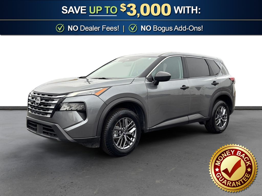 2024 Nissan Rogue S Gun Metallic S AWD CVT with Xtronic 1.5L DOHC AWD, 17" Aluminum Alloy Wheels, 4 Speakers, 4-Wheel Disc Brakes, 5.676 Axle Ratio, ABS brakes, Air Conditioning, Alloy wheels, AM/FM radio: SiriusXM, Auto High-beam Headlights, Blind Spot Warning, Brake assist, Bumpers: body-color, Cloth Seat Trim, Delay-off headlights, Driver door bin, Driver vanity mirror, Dual front impact airbags, Dual front side impact airbags, Electronic Stability Control, First Aid Kit, Floor Mats w/1-Piece Cargo Area Protector, Four wheel independent suspension, Front anti-roll bar, Front Bucket Seats, Front Center Armrest, Front reading lights, Fully automatic headlights, Illuminated entry, Knee airbag, Low tire pressure warning, NissanConnect featuring Apple CarPlay and Android Auto, Occupant sensing airbag, Outside temperature display, Overhead airbag, Overhead console, Panic alarm, Passenger door bin, Passenger vanity mirror, Power door mirrors, Power steering, Power windows, Radio data system, Radio: AM/FM NissanConnect, Rear anti-roll bar, Rear Parking Sensors, Rear seat center armrest, Rear side impact airbag, Rear window defroster, Rear window wiper, Remote keyless entry, Speed control, Speed-Sensitive Wipers, Split folding rear seat, Spoiler, Steering wheel mounted audio controls, Tachometer, Telescoping steering wheel, Tilt steering wheel, Traction control, Trip computer, Variably intermittent wipers, AWD.