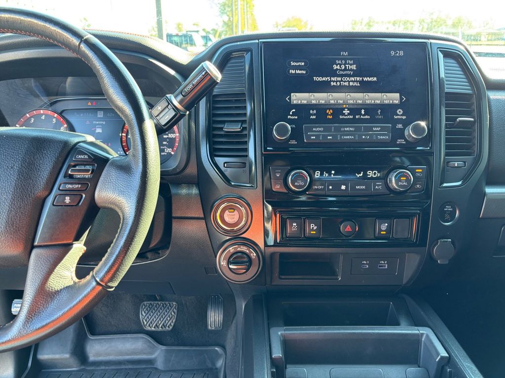 2024 Nissan Titan PRO-4X Baja Storm PRO-4X 4WD 9-Speed Automatic 5.6L V8 DOHC 32V LEV3-ULEV70 400hp 4WD, 3.692 Axle Ratio, 4-Wheel Disc Brakes, 6 Speakers, ABS brakes, Air Conditioning, Alloy wheels, AM/FM radio: SiriusXM, Apple CarPlay/Android Auto, Auto High-beam Headlights, Auto-dimming Rear-View mirror, Auto-leveling suspension, Automatic temperature control, Blind Spot Warning, Brake assist, Cloth Seat Trim w/Vinyl Bolsters, Compass, Delay-off headlights, Driver door bin, Driver vanity mirror, Dual front impact airbags, Dual front side impact airbags, Electronic Stability Control, Emergency communication system: NissanConnect Services, Front anti-roll bar, Front Bucket Seats, Front Captain's Seats, Front Center Armrest, Front dual zone A/C, Front fog lights, Front reading lights, Front wheel independent suspension, Fully automatic headlights, Garage door transmitter: HomeLink, Heated door mirrors, Illuminated entry, Knee airbag, Leather steering wheel, Low tire pressure warning, Navigation system: NissanConnect with Navigation and Services, Occupant sensing airbag, Outside temperature display, Overhead airbag, Overhead console, Panic alarm, Passenger door bin, Passenger vanity mirror, Power door mirrors, Power driver seat, Power steering, Power windows, PRO-4X Badged Floor Mats, PRO-4X Illuminated Kick Plate, PRO-4X Mud Flaps, PRO-4X Rugged Step Boards, Radio data system, Radio: NissanConnect w/Navigation, Rain sensing wipers, Rear anti-roll bar, Rear Parking Sensors, Rear reading lights, Rear seat center armrest, Rear step bumper, Rear Underseat Storage, Rear window defroster, Remote keyless entry, Security system, Speed control, Speed-sensing steering, Speed-Sensitive Wipers, Split folding rear seat, Steering wheel mounted audio controls, Tachometer, Telescoping steering wheel, Tilt steering wheel, Traction control, Trip computer, Variably intermittent wipers, Voltmeter, Wheels: 18" x 8" Painted Dark Finish Alloy, 4WD.