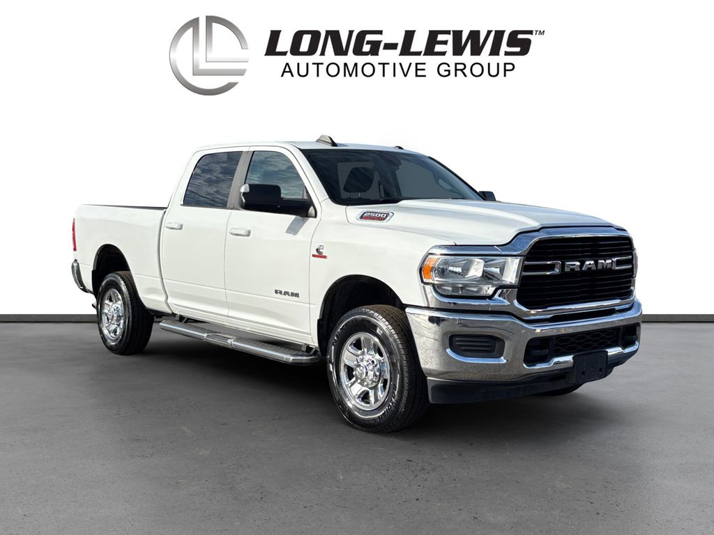 2021 Ram 2500 Big Horn Bright White Clearcoat Big Horn 4WD 6-Speed Automatic Cummins 6.7L I6 Turbodiesel 2 Way Rear Headrest Seat, 3.73 Axle Ratio, 4 Way Front Headrests, 4-Wheel Disc Brakes, 40/20/40 Split Bench Seat, 6 Speakers, ABS brakes, Active Noise Control System, Air Conditioning, AM/FM radio, Brake assist, Bumpers: chrome, Center Hub, Center Stack Storage Drawer, Chrome Flat Cab-Length Side Steps, Cloth 40/20/40 Bench Seat, Compass, Delay-off headlights, Driver door bin, Dual front impact airbags, Dual front side impact airbags, Electronic Stability Control, Electronically Controlled Throttle, Front anti-roll bar, Front Center Armrest w/Storage, Front License Plate Bracket, Front reading lights, Fully automatic headlights, GPS Antenna Input, Heated door mirrors, Illuminated entry, Integrated Voice Command w/Bluetooth, Low tire pressure warning, Manual Adjust 4-Way Driver Seat, Manufacturer's Statement of Origin, Occupant sensing airbag, Outside temperature display, Overhead airbag, Overhead console, Panic alarm, ParkView Rear Back-Up Camera, Passenger door bin, Passenger vanity mirror, Power door mirrors, Power steering, Power windows, Quick Order Package 2HZ Big Horn, Radio data system, Radio: Uconnect 3 w/5" Display, Rear anti-roll bar, Rear Folding Seat, Rear seat center armrest, Rear step bumper, Remote keyless entry, Speed control, Tachometer, Tilt steering wheel, Tip Start, Tow Hooks, Traction control, Trip computer, Turn signal indicator mirrors, Variably intermittent wipers, Vendor Painted Cargo Box Tracking, Voltmeter, Wheels: 18" x 8.0" Steel Chrome Clad.