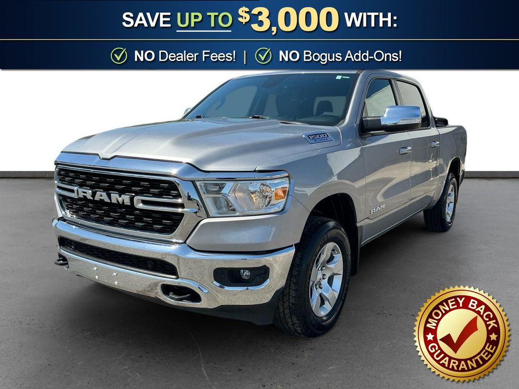 2022 Ram 1500 Big Horn/Lone Star Billet Silver Metallic Clearcoat Big Horn/Lone Star 4WD 8-Speed Automatic 3.6L V6 24V VVT 115V Auxiliary Power Outlet, 115V Auxiliary Rear Power Outlet, 2nd Row In Floor Storage Bins, 3 Rear Seat Head Restraints, 3.21 Rear Axle Ratio, 4 Way Front Headrests, 4-Wheel Disc Brakes, 400W Inverter, 48V Belt Starter Generator, 4G LTE Wi-Fi Hot Spot, 6 Speakers, 8.4" Touchscreen Display, ABS brakes, Air Conditioning, Air Conditioning ATC w/Dual Zone Control, All Plant-Installed Decals, Alloy wheels, AM/FM radio, Apple CarPlay, Auto-Dimming Exterior Driver Mirror, Auto-Dimming Rear-View Mirror, Big Horn Badge, Big Horn Level 2 Equipment Group, Black Exterior Mirrors, Black Premium Power Mirrors, Bluetooth Handsfree Phone & Audio, Brake assist, Bumpers: chrome, Class IV Receiver Hitch, Cloth Bench Seat, Cluster 7.0" TFT Color Display, Compass, Connectivity - US/Canada, Convex Wide-Angle Mirror Insert, Delay-off headlights, Driver door bin, Dual front impact airbags, Dual front side impact airbags, E-Locker Rear Axle, Electronic Stability Control, Emergency communication system: SiriusXM Guardian, Exterior Mirrors Courtesy Lamps, Exterior Mirrors w/Heating Element, Exterior Mirrors w/Supplemental Signals, For Details, Visit DriveUconnect.com, Front anti-roll bar, Front Center Armrest w/Storage, Front Extra HD Shock Absorbers, Front fog lights, Front reading lights, Front Seat Back Map Pockets, Front wheel independent suspension, Fully automatic headlights, Global Telematics Box Module (TBM), Glove Box Lamp, Google Android Auto, GPS Antenna Input, Heated door mirrors, Heated Front Seats, Heated Steering Wheel, Heavy-Duty Engine Cooling, Hill Descent Control, Illuminated entry, Integrated Center Stack Radio, Integrated Voice Command w/Bluetooth, Leather steering wheel, Low tire pressure warning, Media Hub w/2 Charge Only USBs, MOPAR Front & Rear Rubber Floor Mats, Occupant sensing airbag, Off Road Decals, Off Road Group, Outside temperature display, Overhead airbag, Overhead console, Panic alarm, ParkSense Front/Rear Park Assist w/Stop, ParkView Rear Back-Up Camera, Passenger door bin, Passenger vanity mirror, Power 2-Way Driver Lumbar Adjust, Power 8-Way Driver Seat, Power Adjustable Pedals, Power door mirrors, Power steering, Power windows, Power-Folding Mirrors, Quick Order Package 23Z Big Horn, Radio data system, Radio: Uconnect 3 w/5" Display, Radio: Uconnect 5 W w/8.4" Display, Raised Ride Height, Rear 60/40 Folding Seat, Rear anti-roll bar, Rear Dome w/On/Off Switch Lamp, Rear Extra HD Shock Absorbers, Rear Power Sliding Window, Rear seat center armrest, Rear step bumper, Rear Underseat Compartment Storage (DISC), Rear Wheelhouse Liners, Rear Window Defroster, Remote keyless entry, Remote Start System, Security Alarm, SiriusXM Radio Service, SiriusXM Satellite Radio, Speed control, Split folding rear seat, Steering wheel mounted audio controls, Sun Visors w/Illuminated Vanity Mirrors, Tachometer, Telescoping steering wheel, Tilt steering wheel, Tow Hooks, Traction control, Trailer Brake Control, Trip computer, Universal Garage Door Opener, USB Host Flip, Variably intermittent wipers, Voltmeter, Wheels: 18" x 8" Cast-Aluminum Painted.