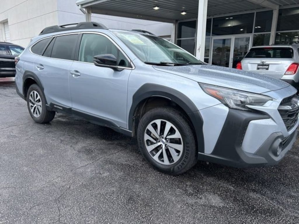 2023 Subaru Outback Premium Ice Silver Metallic Premium AWD CVT Lineartronic 2.5L 4-Cylinder DOHC 16V 3.90 Axle Ratio, 4-Wheel Disc Brakes, 6 Speakers, ABS brakes, Air Conditioning, Alloy wheels, AM/FM radio: SiriusXM, Auto High-beam Headlights, Automatic temperature control, Blind Spot Detection (BSD), Brake assist, BSD & RCTA & Keyless Access & Push Button Start, Bumpers: body-color, Cloth Upholstery, Driver door bin, Driver vanity mirror, Dual front impact airbags, Dual front side impact airbags, Electronic Stability Control, Emergency communication system: STARLINK Safety Plus (3-year free trial), Exterior Parking Camera Rear, Four wheel independent suspension, Front anti-roll bar, Front Bucket Seats, Front Center Armrest w/Storage, Front dual zone A/C, Front fog lights, Front reading lights, Fully automatic headlights, Hands-Free Power Rear Gate, Heated door mirrors, Heated Front Bucket Seats, Heated front seats, Illuminated entry, Keyless Access w/Push Button Start, Knee airbag, Leather Shift Knob, Leather steering wheel, Low tire pressure warning, Occupant sensing airbag, Outside temperature display, Overhead airbag, Overhead console, Panic alarm, Passenger door bin, Passenger vanity mirror, Power door mirrors, Power driver seat, Power Moonroof, Power steering, Power windows, Radio: Subaru STARLINK 11.6" Multimedia Nav System, Radio: Subaru STARLINK 11.6" Multimedia Plus Sys, Rear anti-roll bar, Rear Cross Traffic Alert (RCTA), Rear seat center armrest, Rear window defroster, Rear window wiper, Remote keyless entry, Roof rack, Security system, Speed control, Speed-sensing steering, Split folding rear seat, Spoiler, Steering wheel mounted audio controls, Steering Wheel Paddle Shift Control Switches, Tachometer, Telescoping steering wheel, Tilt steering wheel, Traction control, Trip computer, Turn signal indicator mirrors, Variably intermittent wipers, Wheels: 17" x 7J Black Aluminum Alloy.
