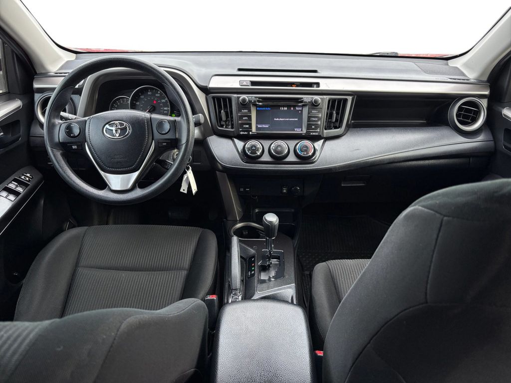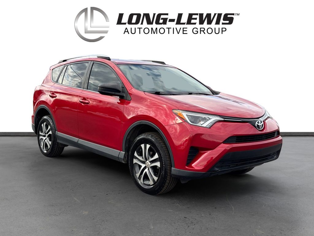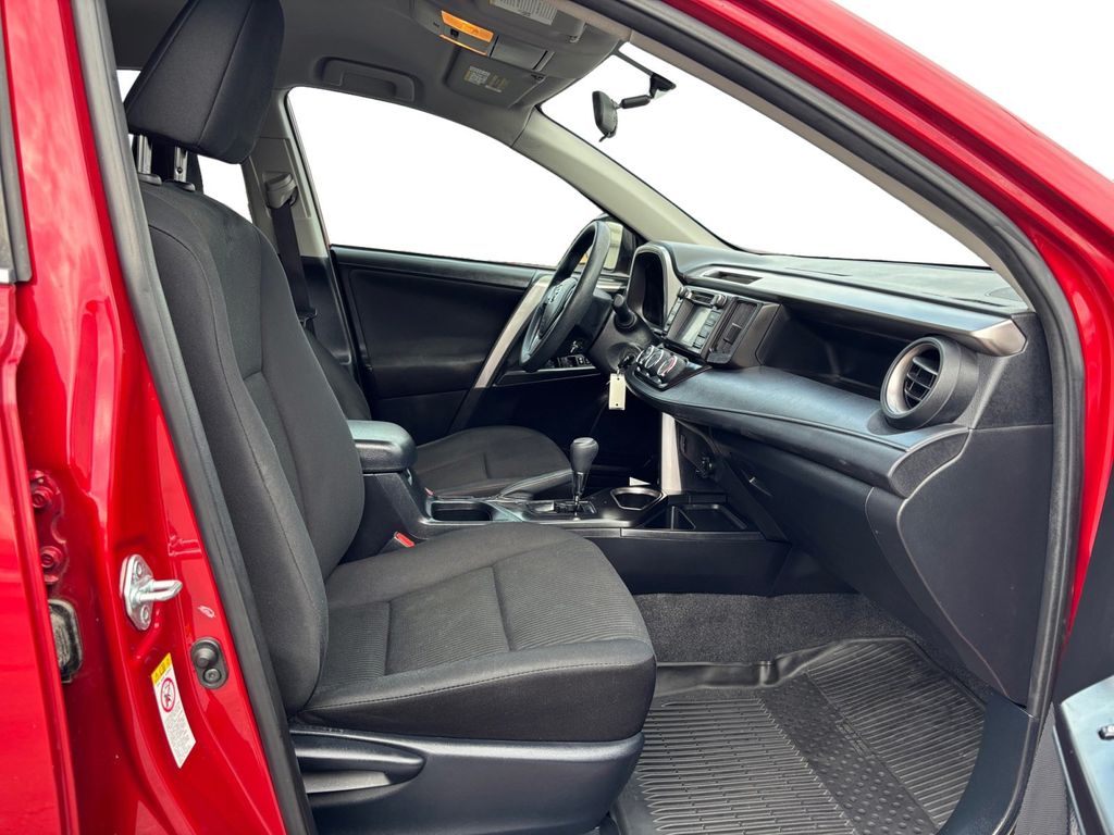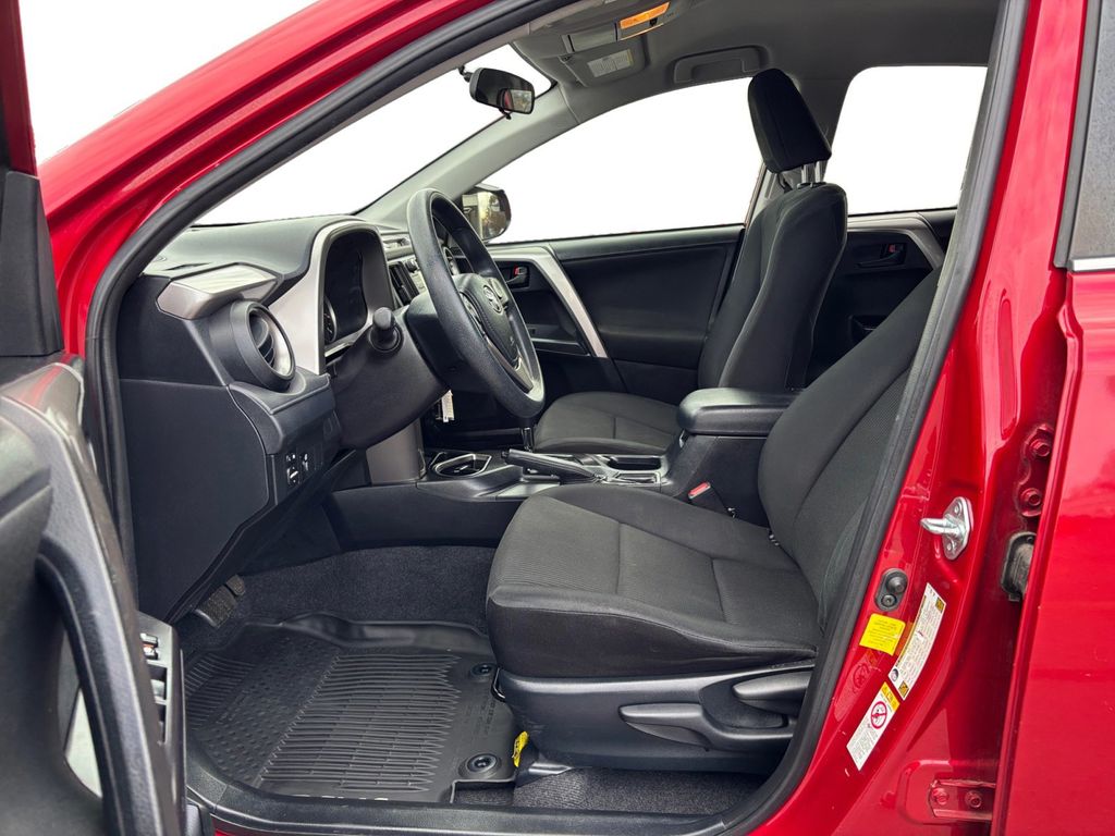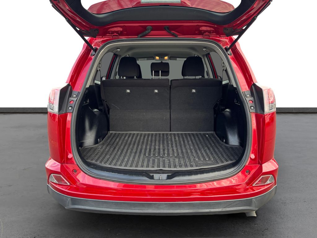 2016 Toyota RAV4 LE Red LE FWD 6-Speed Automatic 2.5L 4-Cylinder DOHC Dual VVT-i Cloth, 3.815 Axle Ratio, 4-Wheel Disc Brakes, 6 Speakers, ABS brakes, Air Conditioning, AM/FM radio, Brake assist, Bumpers: body-color, CD player, Driver door bin, Driver vanity mirror, Dual front impact airbags, Dual front side impact airbags, Electronic Stability Control, Exterior Parking Camera Rear, Fabric Seat Trim, Four wheel independent suspension, Front anti-roll bar, Front Bucket Seats, Front Center Armrest, Front reading lights, Illuminated entry, Knee airbag, Low tire pressure warning, Occupant sensing airbag, Outside temperature display, Overhead airbag, Overhead console, Panic alarm, Passenger door bin, Passenger vanity mirror, Power door mirrors, Power steering, Power windows, Radio data system, Radio: Entune AM/FM/CD/MP3/WMA Playback w/6 Speakers, Rear anti-roll bar, Rear seat center armrest, Rear window defroster, Rear window wiper, Remote keyless entry, Roof rack: rails only, Speed control, Speed-sensing steering, Split folding rear seat, Spoiler, Steering wheel mounted audio controls, Tachometer, Telescoping steering wheel, Tilt steering wheel, Traction control, Trip computer, Wheels: 17" x 6.5J, Cloth.