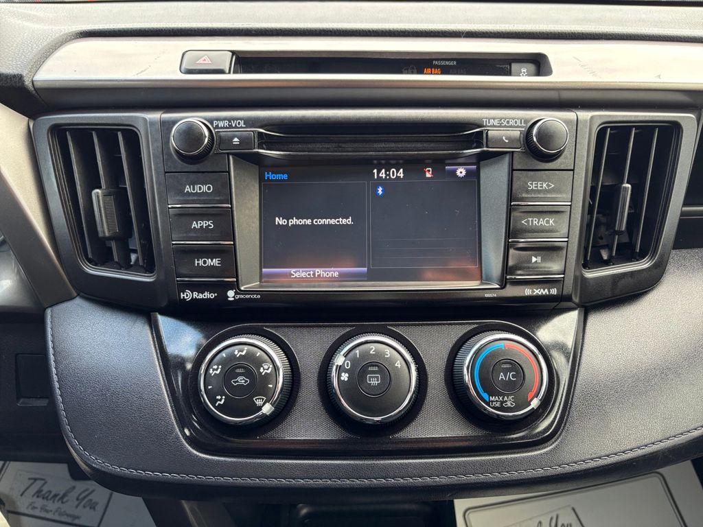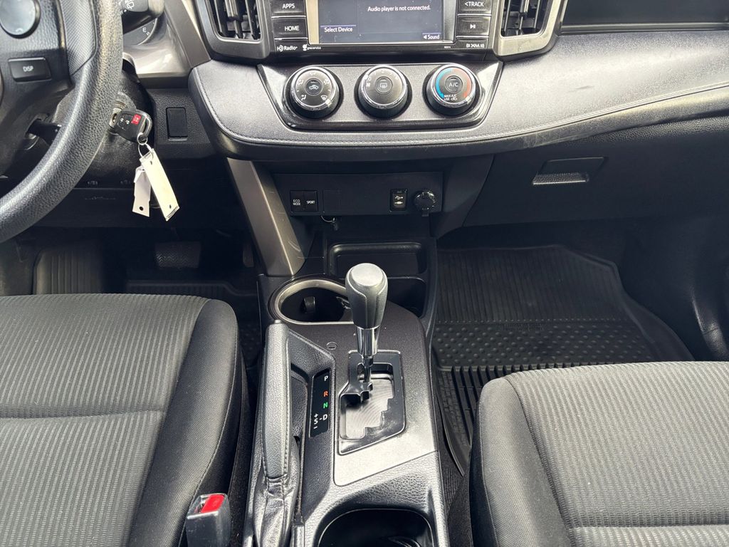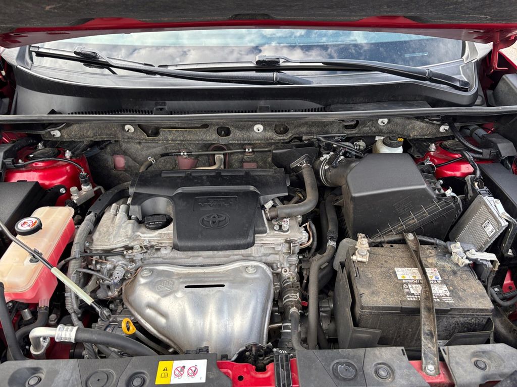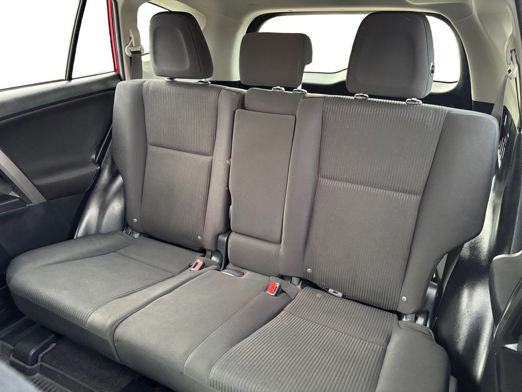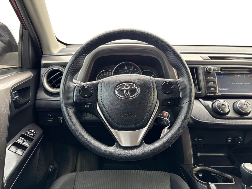 2016 Toyota RAV4 LE Red LE FWD 6-Speed Automatic 2.5L 4-Cylinder DOHC Dual VVT-i Cloth, 3.815 Axle Ratio, 4-Wheel Disc Brakes, 6 Speakers, ABS brakes, Air Conditioning, AM/FM radio, Brake assist, Bumpers: body-color, CD player, Driver door bin, Driver vanity mirror, Dual front impact airbags, Dual front side impact airbags, Electronic Stability Control, Exterior Parking Camera Rear, Fabric Seat Trim, Four wheel independent suspension, Front anti-roll bar, Front Bucket Seats, Front Center Armrest, Front reading lights, Illuminated entry, Knee airbag, Low tire pressure warning, Occupant sensing airbag, Outside temperature display, Overhead airbag, Overhead console, Panic alarm, Passenger door bin, Passenger vanity mirror, Power door mirrors, Power steering, Power windows, Radio data system, Radio: Entune AM/FM/CD/MP3/WMA Playback w/6 Speakers, Rear anti-roll bar, Rear seat center armrest, Rear window defroster, Rear window wiper, Remote keyless entry, Roof rack: rails only, Speed control, Speed-sensing steering, Split folding rear seat, Spoiler, Steering wheel mounted audio controls, Tachometer, Telescoping steering wheel, Tilt steering wheel, Traction control, Trip computer, Wheels: 17" x 6.5J, Cloth.