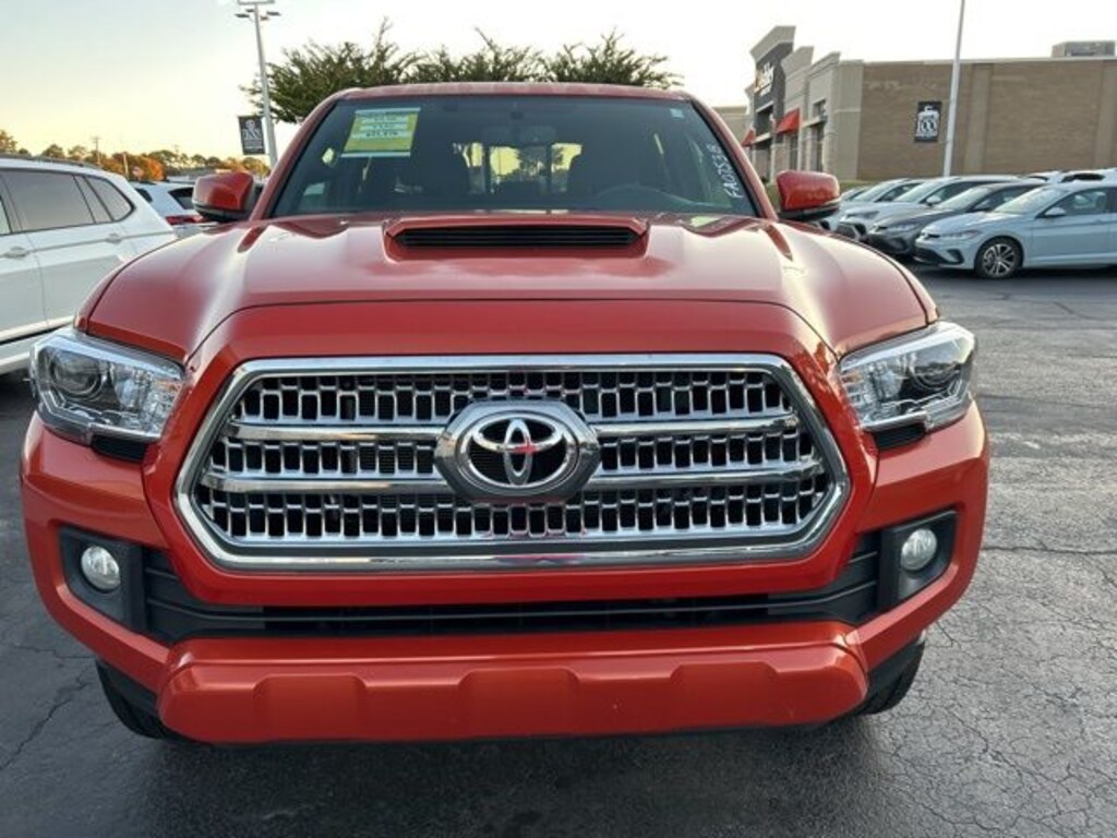 2016 Toyota Tacoma Orange RWD 6-Speed Automatic V6 ABS brakes, Air Conditioning, AM/FM radio: SiriusXM, Anti-whiplash front head restraints, Axle Ratio: 3.91, Brake assist, Bumpers: body-color, CD player, Driver door bin, Dual front impact airbags, Dual front side impact airbags, Electronic Stability Control, Exterior Parking Camera Rear, Front anti-roll bar, Front Bucket Seats, Front Center Armrest, Front fog lights, Front reading lights, Front wheel independent suspension, Illuminated entry, Knee airbag, Low tire pressure warning, Occupant sensing airbag, Outside temperature display, Overhead airbag, Overhead console, Panic alarm, Passenger door bin, Power door mirrors, Power steering, Power windows, Rear step bumper, Remote keyless entry, Speed control, Speed-sensing steering, Split folding rear seat, Steering wheel mounted audio controls, Tachometer, Telescoping steering wheel, Tilt steering wheel, Traction control, Trip computer, Variably intermittent wipers.