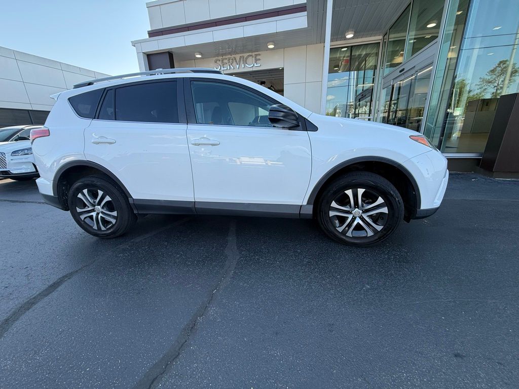 2018 Toyota RAV4 LE White LE AWD 6-Speed Automatic 2.5L 4-Cylinder DOHC Dual VVT-i AWD, Cloth, 4-Wheel Disc Brakes, 4.071 Axle Ratio, 6 Speakers, ABS brakes, Air Conditioning, AM/FM radio, Auto High-beam Headlights, Brake assist, Bumpers: body-color, CD player, Driver door bin, Driver vanity mirror, Dual front impact airbags, Dual front side impact airbags, Electronic Stability Control, Exterior Parking Camera Rear, Fabric Seat Trim, Four wheel independent suspension, Front anti-roll bar, Front Bucket Seats, Front Center Armrest, Front reading lights, Fully automatic headlights, Illuminated entry, Knee airbag, Low tire pressure warning, Occupant sensing airbag, Outside temperature display, Overhead airbag, Overhead console, Panic alarm, Passenger door bin, Passenger vanity mirror, Power door mirrors, Power steering, Power windows, Radio data system, Radio: Entune AM/FM/CD/MP3/WMA Playback w/6 Speakers, Rear anti-roll bar, Rear seat center armrest, Rear window defroster, Rear window wiper, Remote keyless entry, Speed control, Speed-sensing steering, Split folding rear seat, Spoiler, Steering wheel mounted audio controls, Tachometer, Telescoping steering wheel, Tilt steering wheel, Traction control, Trip computer, Wheels: 17" x 6.5J, AWD, Cloth.