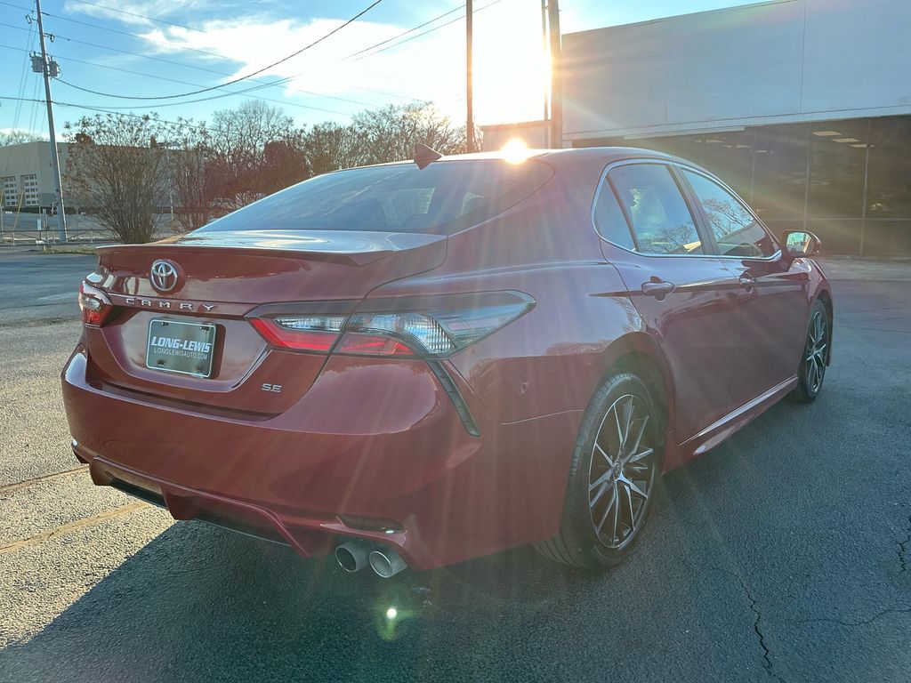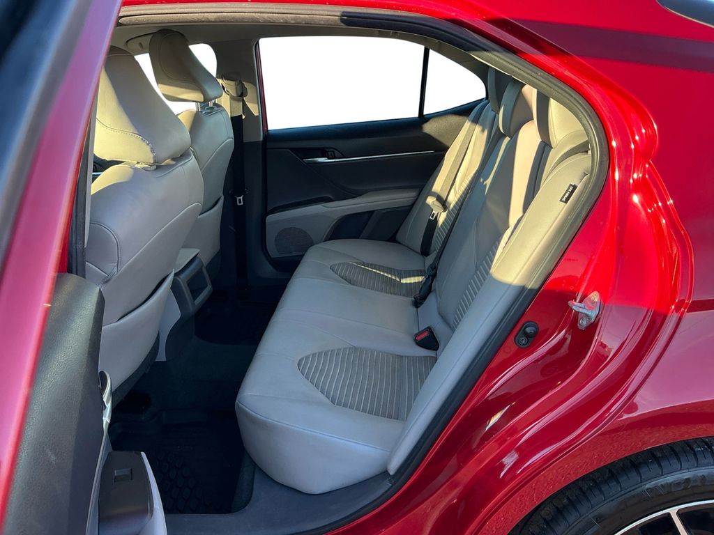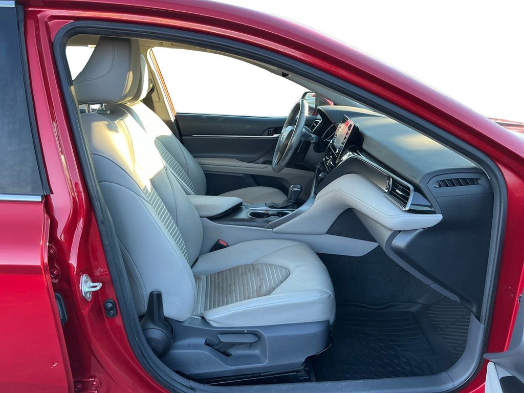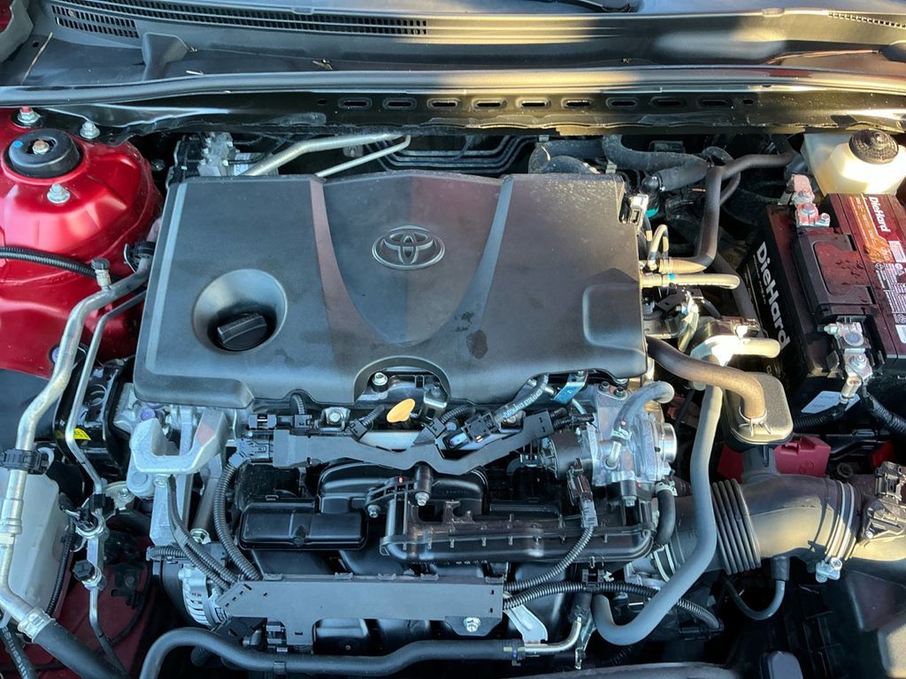 2021 Toyota Camry Red FWD 8-Speed Automatic 2.5L I4 DOHC 16V Cloth, 4-Wheel Disc Brakes, 6 Speakers, ABS brakes, Air Conditioning, Alloy wheels, AM/FM radio: SiriusXM, Apple CarPlay/Android Auto, Auto High-beam Headlights, Automatic temperature control, Brake assist, Bumpers: body-color, Delay-off headlights, Driver door bin, Driver vanity mirror, Dual front impact airbags, Dual front side impact airbags, Electronic Stability Control, Emergency communication system: Safety Connect with 1-year trial, Exterior Parking Camera Rear, Fabric Seat Trim w/Sport SofTex, Four wheel independent suspension, Front anti-roll bar, Front Bucket Seats, Front Center Armrest, Front reading lights, Fully automatic headlights, Illuminated entry, Knee airbag, Low tire pressure warning, Occupant sensing airbag, Outside temperature display, Overhead airbag, Overhead console, Panic alarm, Passenger door bin, Passenger vanity mirror, Power door mirrors, Power driver seat, Power steering, Power windows, Radio data system, Radio: AM/FM Audio System, Rear anti-roll bar, Rear seat center armrest, Rear side impact airbag, Rear window defroster, Remote keyless entry, Security system, Speed control, Speed-sensing steering, Split folding rear seat, Spoiler, Steering wheel mounted audio controls, Tachometer, Telescoping steering wheel, Tilt steering wheel, Traction control, Trip computer, Variably intermittent wipers, Cloth.