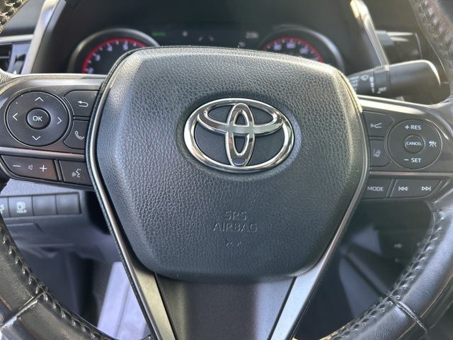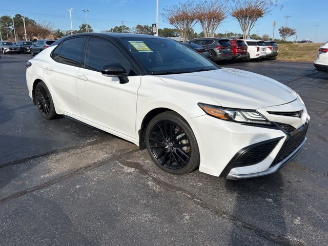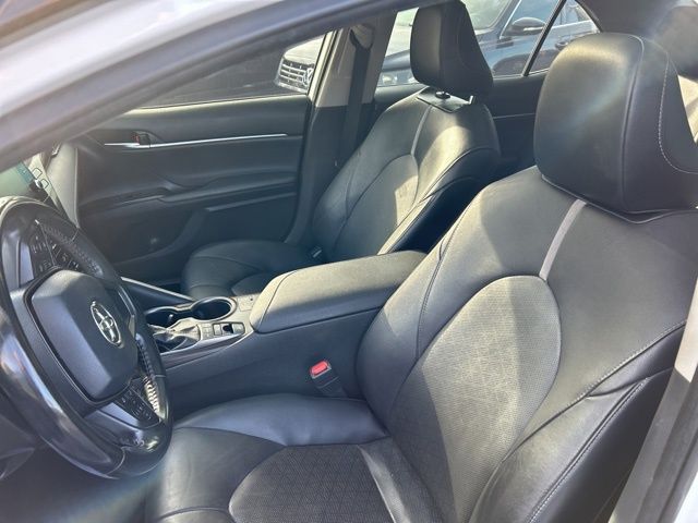 2021 Toyota Camry XSE White XSE FWD 8-Speed Automatic 2.5L I4 DOHC 16V Leather, 4-Wheel Disc Brakes, 6 Speakers, ABS brakes, Air Conditioning, Alloy wheels, AM/FM radio: SiriusXM, Apple CarPlay/Android Auto, Auto High-beam Headlights, Auto-dimming Rear-View mirror, Automatic temperature control, Brake assist, Bumpers: body-color, Delay-off headlights, Driver door bin, Driver vanity mirror, Dual front impact airbags, Dual front side impact airbags, Electronic Stability Control, Emergency communication system: Safety Connect with 1-year trial, Exterior Parking Camera Rear, Four wheel independent suspension, Front anti-roll bar, Front Bucket Seats, Front Center Armrest, Front dual zone A/C, Front reading lights, Fully automatic headlights, Garage door transmitter: HomeLink, Heated door mirrors, Heated front seats, Illuminated entry, Knee airbag, Low tire pressure warning, Multi-Stage Heated Front Bucket Seats, Occupant sensing airbag, Outside temperature display, Overhead airbag, Overhead console, Panic alarm, Passenger door bin, Passenger vanity mirror, Perforated Leather Seat Trim, Power door mirrors, Power driver seat, Power passenger seat, Power steering, Power windows, Radio data system, Radio: AM/FM/HD Audio Plus, Rear anti-roll bar, Rear reading lights, Rear seat center armrest, Rear side impact airbag, Rear window defroster, Remote keyless entry, Security system, Speed control, Speed-sensing steering, Split folding rear seat, Spoiler, Steering wheel mounted audio controls, Tachometer, Telescoping steering wheel, Tilt steering wheel, Traction control, Trip computer, Turn signal indicator mirrors, Variably intermittent wipers, Wheels: 8.0J x 19" Black Machined-Finish Alloy, Leather.