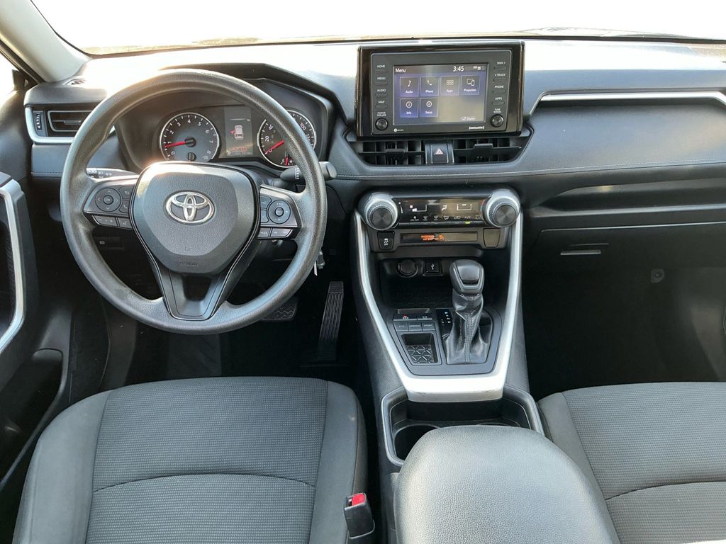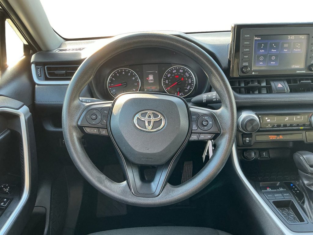 2021 Toyota RAV4 LE Midnight Black Metallic LE FWD 8-Speed Automatic 2.5L 4-Cylinder DOHC Dual VVT-i Black Cloth, 17" Steel Wheels, 4-Wheel Disc Brakes, 6 Speakers, ABS brakes, Air Conditioning, AM/FM radio: SiriusXM, AM/FM Stereo, Apple CarPlay/Android Auto, Auto High-beam Headlights, Axle Ratio: 3.177, Brake assist, Bumpers: body-color, Driver door bin, Driver vanity mirror, Dual front impact airbags, Dual front side impact airbags, Electronic Stability Control, Emergency communication system, Exterior Parking Camera Rear, Fabric Seat Trim, Four wheel independent suspension, Front anti-roll bar, Front Bucket Seats, Front Center Armrest, Front reading lights, Illuminated entry, Knee airbag, Low tire pressure warning, Occupant sensing airbag, Outside temperature display, Overhead airbag, Overhead console, Panic alarm, Passenger door bin, Passenger vanity mirror, Power door mirrors, Power steering, Power windows, Radio data system, Rear anti-roll bar, Rear seat center armrest, Rear window defroster, Rear window wiper, Remote keyless entry, Roof rack: rails only, Speed control, Speed-sensing steering, Split folding rear seat, Spoiler, Steering wheel mounted audio controls, Tachometer, Telescoping steering wheel, Tilt steering wheel, Traction control, Trip computer, Black Cloth.