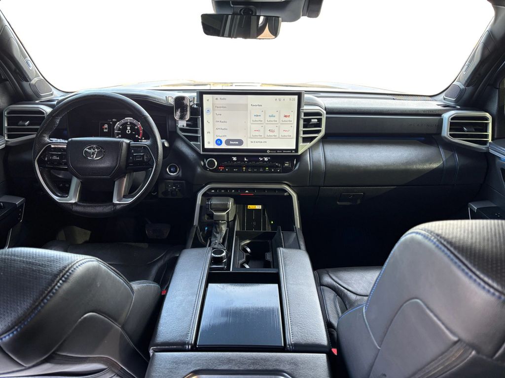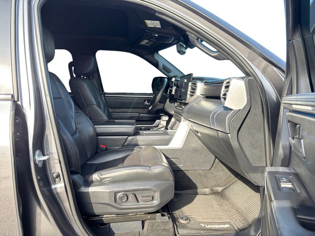 2023 Toyota Tundra Platinum Gray Platinum 4WD 10-Speed Automatic 3.4L V6 4WD, Leather, 10-Way Pwr Adj Heated and Ventilated Front Seats, 12 Speakers, 3.31 Axle Ratio, 4-Wheel Disc Brakes, ABS brakes, Air Conditioning, Alloy wheels, AM/FM radio: SiriusXM, Apple CarPlay/Android Auto, Auto High-beam Headlights, Auto-dimming door mirrors, Auto-dimming Rear-View mirror, Automatic temperature control, Brake assist, Bumpers: body-color, Delay-off headlights, Driver door bin, Driver vanity mirror, Dual front impact airbags, Dual front side impact airbags, Electronic Stability Control, Emergency communication system: Safety Connect (10-year trial), Front anti-roll bar, Front Bucket Seats, Front Center Armrest, Front dual zone A/C, Front fog lights, Front reading lights, Front wheel independent suspension, Fully automatic headlights, Garage door transmitter: HomeLink, Heated door mirrors, Heated front seats, Heated rear seats, Heated steering wheel, Illuminated entry, Knee airbag, Leather Seat Trim, Leather Shift Knob, Low tire pressure warning, Memory seat, Navigation System, Occupant sensing airbag, Outside temperature display, Overhead airbag, Overhead console, Panic alarm, Passenger door bin, Passenger vanity mirror, Power door mirrors, Power driver seat, Power moonroof, Power passenger seat, Power steering, Power windows, Radio data system, Radio: Audio Multimedia System, Rain sensing wipers, Rear reading lights, Rear seat center armrest, Rear step bumper, Rear window defroster, Remote keyless entry, Safety Connect, Security system, Speed control, Speed-sensing steering, Split folding rear seat, Steering wheel memory, Steering wheel mounted audio controls, Tachometer, Telescoping steering wheel, Tilt steering wheel, Traction control, Trip computer, Turn signal indicator mirrors, Variably intermittent wipers, Ventilated front seats, Ventilated rear seats, Voltmeter, Wheels: 20" Dark Painted Alloy, 4WD, Leather.