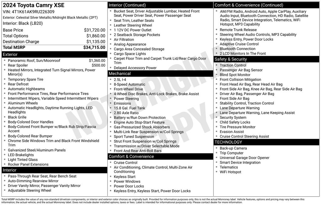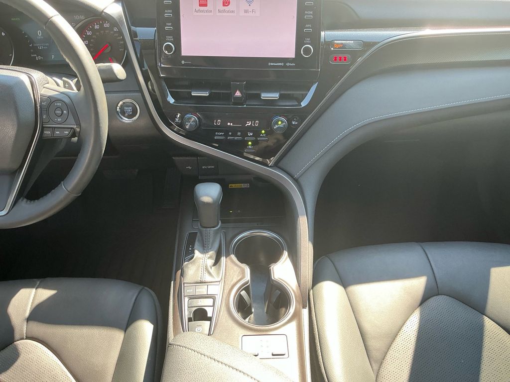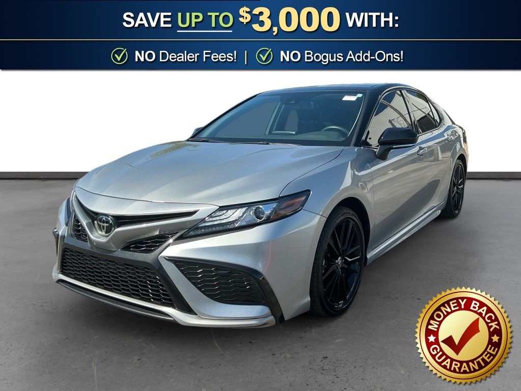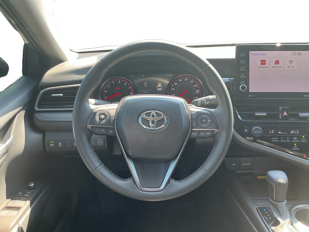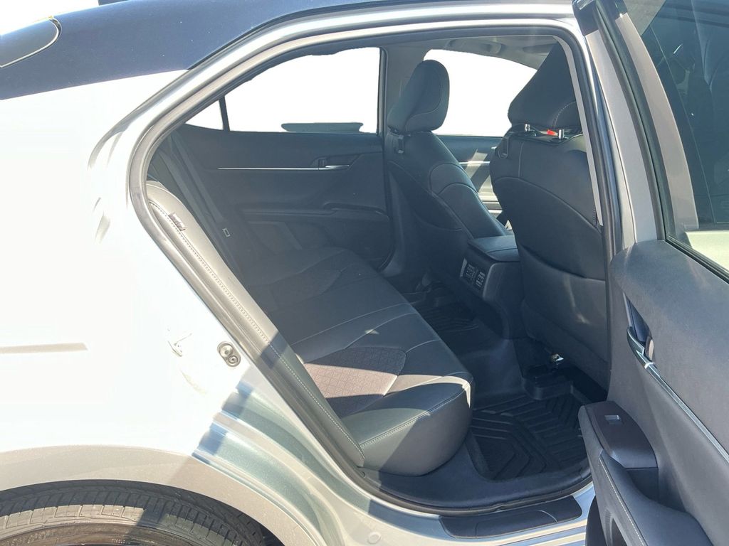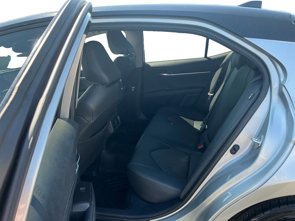2024 Toyota Camry XSE Celestial Silver Metallic XSE FWD 8-Speed Automatic 2.5L I4 DOHC 16V Black Leather, 4-Wheel Disc Brakes, 6 Speakers, ABS brakes, Air Conditioning, Alloy wheels, AM/FM radio: SiriusXM, Apple CarPlay/Android Auto, Auto High-beam Headlights, Auto-dimming Rear-View mirror, Automatic temperature control, Brake assist, Bumpers: body-color, Delay-off headlights, Driver door bin, Driver vanity mirror, Dual front impact airbags, Dual front side impact airbags, Electronic Stability Control, Emergency communication system: Safety Connect (1-year trial), Exterior Parking Camera Rear, Four wheel independent suspension, Front anti-roll bar, Front Bucket Seats, Front Center Armrest, Front dual zone A/C, Front reading lights, Fully automatic headlights, Garage door transmitter: HomeLink, Heated door mirrors, Heated front seats, Illuminated entry, Knee airbag, Leather steering wheel, Low tire pressure warning, Multi-Stage Heated Front Bucket Seats, Occupant sensing airbag, Outside temperature display, Overhead airbag, Overhead console, Panic alarm, Passenger door bin, Passenger vanity mirror, Perforated Leather Seat Trim, Power door mirrors, Power driver seat, Power passenger seat, Power steering, Power windows, Radio data system, Radio: Audio Plus, Rear anti-roll bar, Rear reading lights, Rear seat center armrest, Rear side impact airbag, Rear window defroster, Remote keyless entry, Security system, Speed control, Speed-sensing steering, Split folding rear seat, Spoiler, Steering wheel mounted audio controls, Tachometer, Telescoping steering wheel, Tilt steering wheel, Traction control, Trip computer, Turn signal indicator mirrors, Variably intermittent wipers, Wheels: 19" x 8J Alloy, Black Leather.