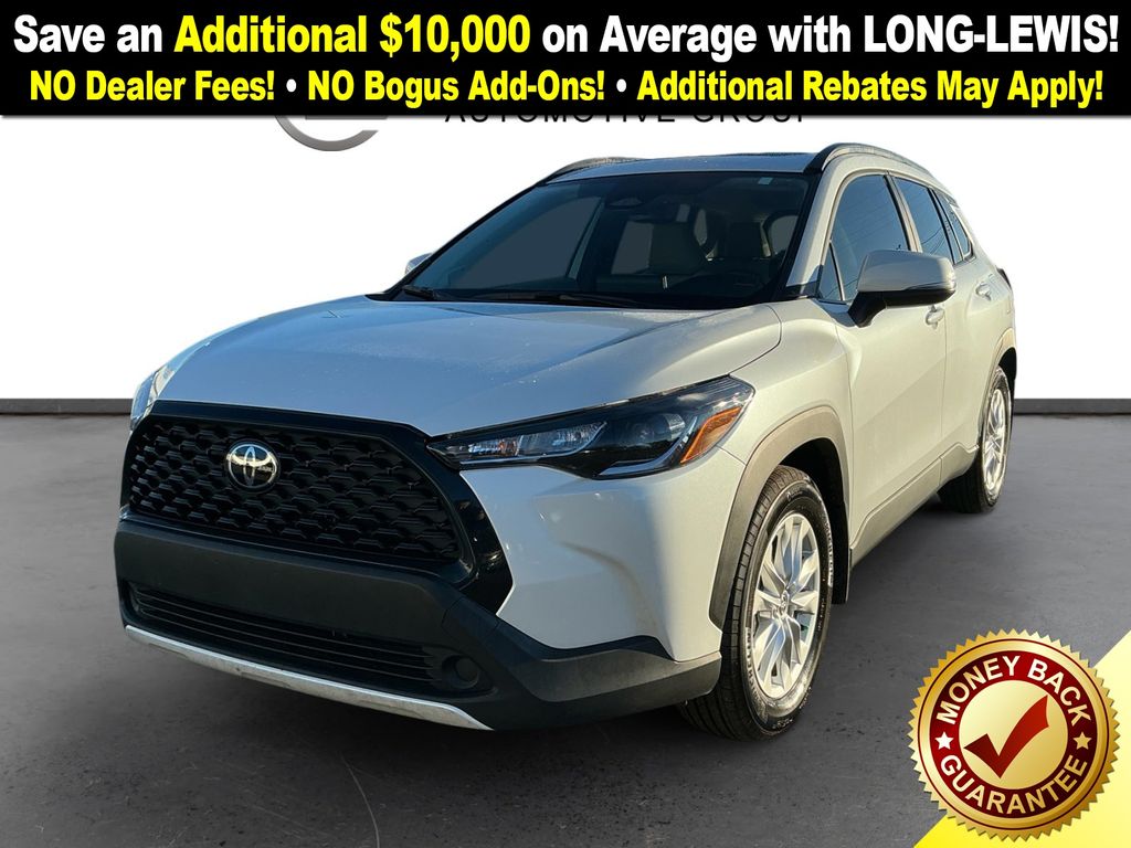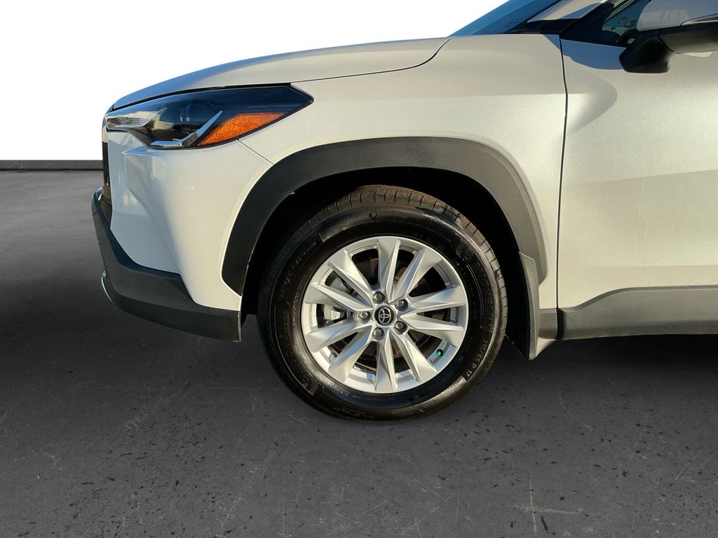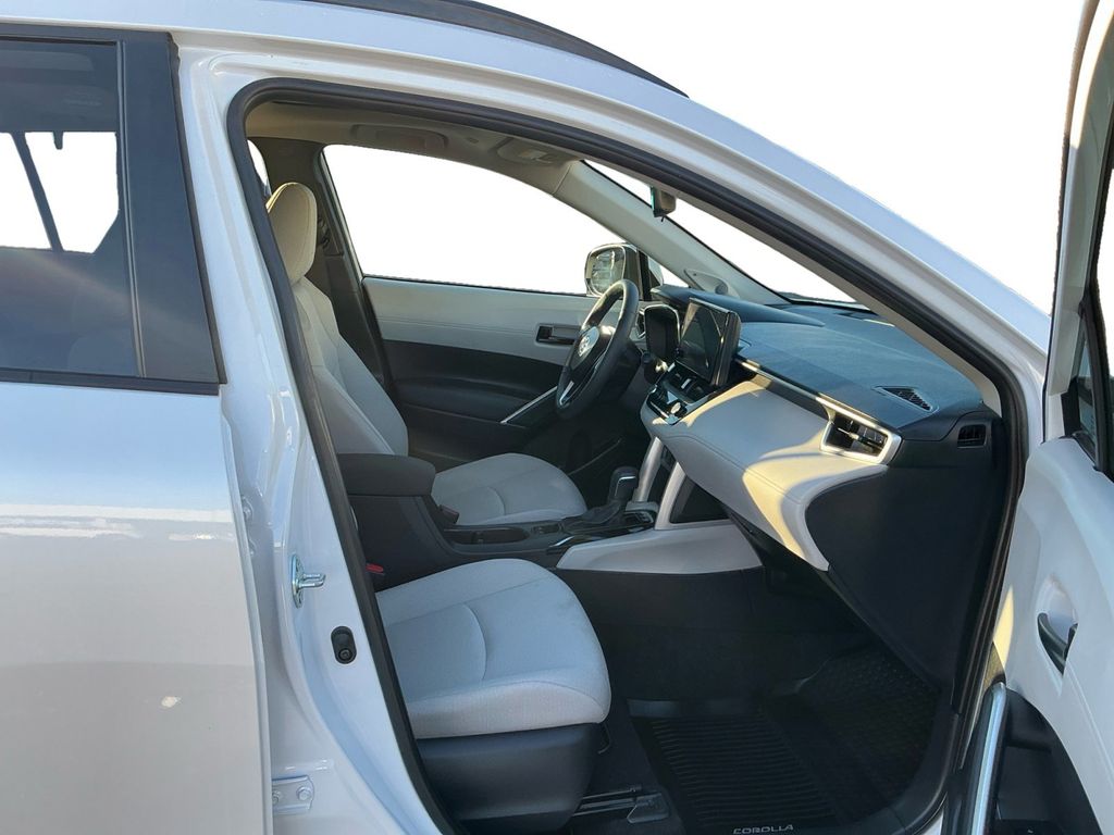2024 Toyota Corolla Cross LE White LE FWD CVT 2.0L I4 PDI DOHC 16V LEV3-SULEV30 169hp 17" Silver Alloy Wheels, 4-Wheel Disc Brakes, 4.014 Axle Ratio, 6 Speakers, ABS brakes, Air Conditioning, Alloy wheels, AM/FM radio: SiriusXM, Auto High-beam Headlights, Automatic temperature control, Brake assist, Bumpers: body-color, Delay-off headlights, Driver door bin, Driver vanity mirror, Dual front impact airbags, Dual front side impact airbags, Electronic Stability Control, Emergency communication system: Safety Connect (10-year trial), Exterior Parking Camera Rear, Fabric Seat Trim, Front anti-roll bar, Front Bucket Seats, Front Center Armrest, Front reading lights, Front wheel independent suspension, Fully automatic headlights, Heated door mirrors, Illuminated entry, Knee airbag, Leather steering wheel, Low tire pressure warning, Occupant sensing airbag, Outside temperature display, Overhead airbag, Panic alarm, Passenger door bin, Passenger vanity mirror, Power door mirrors, Power steering, Power windows, Radio data system, Radio: 8" Touch-Screen Display Audio, Rear anti-roll bar, Rear side impact airbag, Rear window defroster, Rear window wiper, Remote keyless entry, Speed control, Split folding rear seat, Spoiler, Steering wheel mounted audio controls, Tachometer, Telescoping steering wheel, Tilt steering wheel, Traction control, Trip computer, Turn signal indicator mirrors, Variably intermittent wipers.