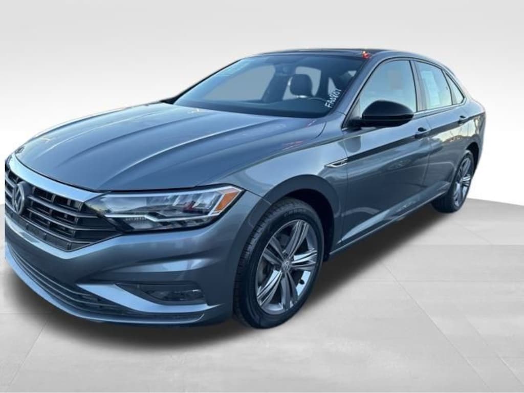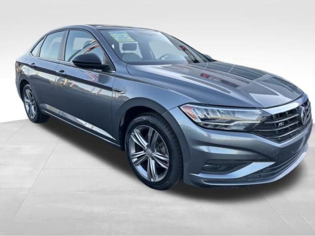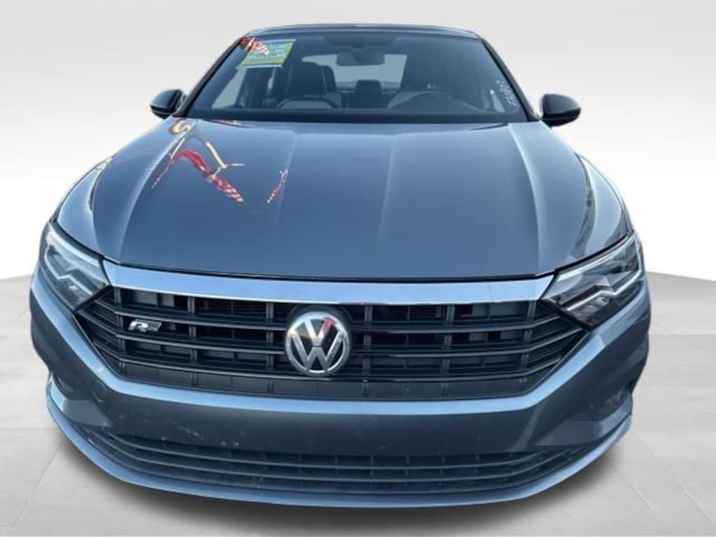 2019 Volkswagen Jetta R-Line Platinum Gray Metallic R-Line FWD 8-Speed Automatic with Tiptronic 1.4L TSI Storm Gray/Black Premium Synthetic, 4 Speakers, 4-Wheel Disc Brakes, ABS brakes, Air Conditioning, Alloy wheels, AM/FM radio, Automatic temperature control, Brake assist, Bumpers: body-color, Delay-off headlights, Driver door bin, Driver vanity mirror, Dual front impact airbags, Dual front side impact airbags, Electronic Stability Control, Exterior Parking Camera Rear, Front anti-roll bar, Front Bucket Seats, Front Center Armrest, Front dual zone A/C, Front fog lights, Front reading lights, Front wheel independent suspension, Fully automatic headlights, Heated door mirrors, Heated Front Comfort Seats, Heated front seats, Heavy Duty Trunk Liner w/VW CarGo Blocks, Illuminated entry, Leather Shift Knob, Low tire pressure warning, Monster Mats w/Logo Rubber Mats Kit (Set of 4), Occupant sensing airbag, Outside temperature display, Overhead airbag, Overhead console, Panic alarm, Passenger door bin, Passenger vanity mirror, Perforated V-Tex Leatherette Seat Trim, Power door mirrors, Power moonroof, Power steering, Power windows, Radio data system, Radio: Composition Color w/6.5" Touchscreen, Rear anti-roll bar, Rear reading lights, Rear seat center armrest, Rear window defroster, Remote keyless entry, Roadside Assistance Kit, Speed control, Speed-sensing steering, Split folding rear seat, Steering wheel mounted audio controls, Tachometer, Telescoping steering wheel, Tilt steering wheel, Traction control, Trip computer, Variably intermittent wipers, Wheels: 17" Trenton, Storm Gray/Black Premium Synthetic.