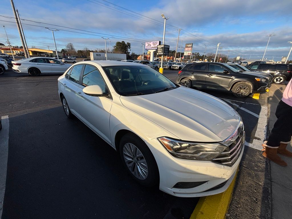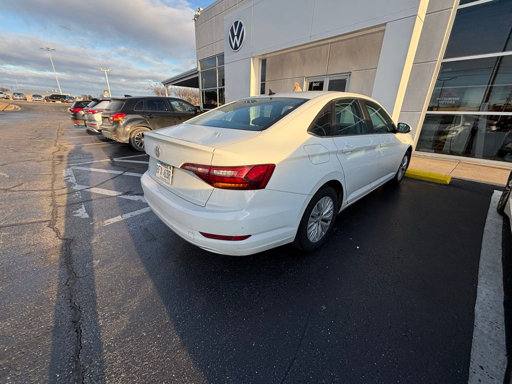 2019 Volkswagen Jetta 1.4T S White 1.4T S FWD 8-Speed Automatic with Tiptronic 1.4L TSI Cloth, 4 Speakers, 4-Wheel Disc Brakes, ABS brakes, Air Conditioning, Alloy wheels, AM/FM radio, Brake assist, Bumpers: body-color, Cloth Seat Trim, Delay-off headlights, Driver door bin, Driver vanity mirror, Dual front impact airbags, Dual front side impact airbags, Electronic Stability Control, Exterior Parking Camera Rear, Front anti-roll bar, Front Bucket Seats, Front Center Armrest, Front Comfort Seats, Front wheel independent suspension, Fully automatic headlights, Illuminated entry, Low tire pressure warning, Occupant sensing airbag, Outside temperature display, Overhead airbag, Panic alarm, Passenger door bin, Passenger vanity mirror, Power door mirrors, Power steering, Power windows, Radio data system, Radio: Composition Color w/6.5" Touchscreen, Rear anti-roll bar, Rear reading lights, Rear window defroster, Remote keyless entry, Speed control, Speed-sensing steering, Split folding rear seat, Steering wheel mounted audio controls, Tachometer, Telescoping steering wheel, Tilt steering wheel, Traction control, Trip computer, Variably intermittent wipers, Wheels: 16" Silver Rama, Cloth.