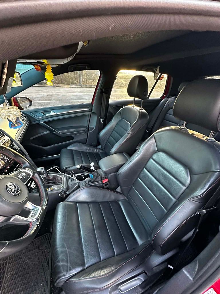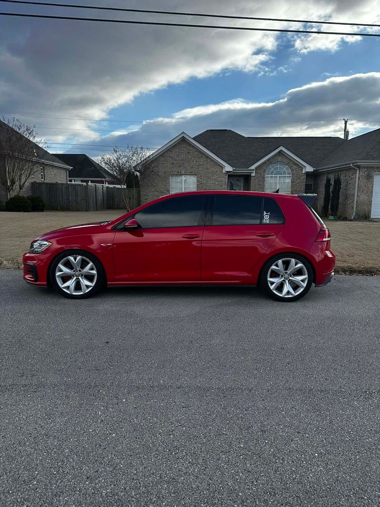 2020 Volkswagen Golf GTI 2.0T SE Tornado Red 2.0T SE FWD 7-Speed DSG Automatic with Tiptronic 2.0L TSI DOHC 4-Wheel Disc Brakes, 6 Speakers, ABS brakes, Active Blind Spot Monitor, Air Conditioning, Alloy wheels, AM/FM radio: SiriusXM, Anti-whiplash front head restraints, Brake assist, Bumpers: body-color, CD player, Compass, Delay-off headlights, Driver door bin, Driver vanity mirror, Dual front impact airbags, Dual front side impact airbags, Electronic Stability Control, Emergency communication system: VW Car-Net services (capabilities require enrollment or subscription), Exterior Parking Camera Rear, First Aid Kit, Forward collision: FCW w/Autonomous Emergency Braking mitigation, Four wheel independent suspension, Front anti-roll bar, Front Bucket Seats, Front Center Armrest, Front fog lights, Front reading lights, Fully automatic headlights, Heated door mirrors, Heated front seats, Heated Front Top Sport Seats, Illuminated entry, Leather Seating Surfaces, Leather Shift Knob, Low tire pressure warning, Luggage Net, Occupant sensing airbag, Outside temperature display, Overhead airbag, Overhead console, Panic alarm, Passenger door bin, Passenger vanity mirror, Power door mirrors, Power driver seat, Power moonroof, Power passenger seat, Power steering, Power windows, Radio data system, Radio: Composition Media w/8" Touchscreen, Radio: Discover Media w/8" Touchscreen Navigation, Rain sensing wipers, Rear anti-roll bar, Rear reading lights, Rear seat center armrest, Rear window defroster, Rear window wiper, Remote keyless entry, Roadside Assistance Kit, Rubber Mats Kit, Speed control, Speed-sensing steering, Speed-Sensitive Wipers, Split folding rear seat, Spoiler, Sport steering wheel, Steering wheel mounted audio controls, Tachometer, Telescoping steering wheel, Tilt steering wheel, Traction control, Trip computer, Turn signal indicator mirrors, Variably intermittent wipers, VW App-Connect (w/Apple CarPlay, Android Auto & MirrorLink), Wheels: 18" 5-Spoke 2-Tone Machined Alloy.