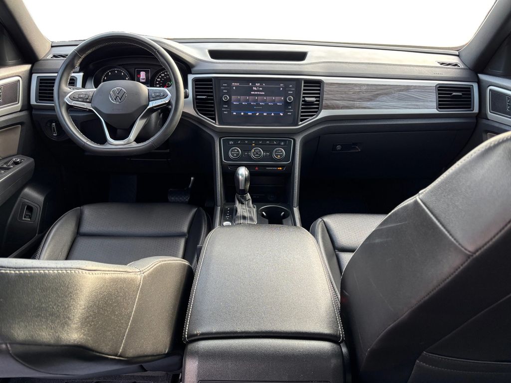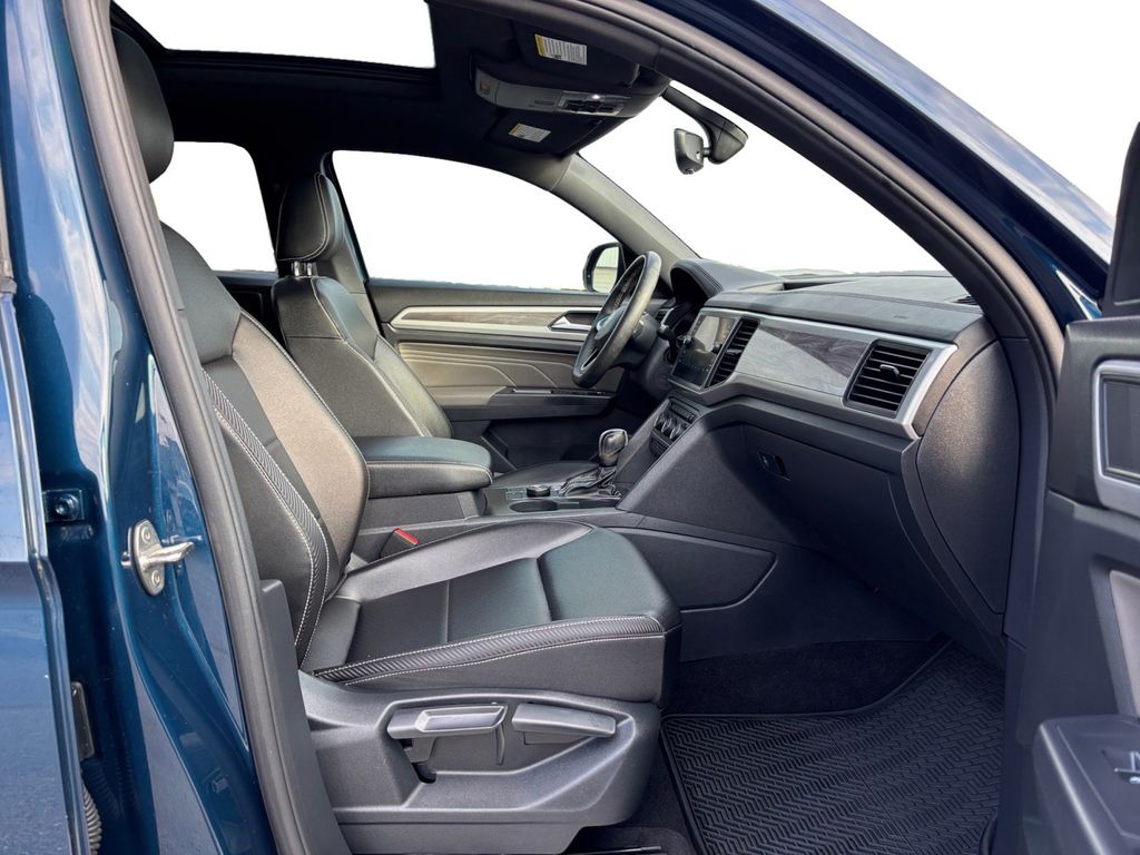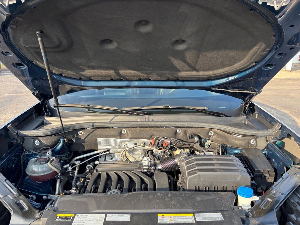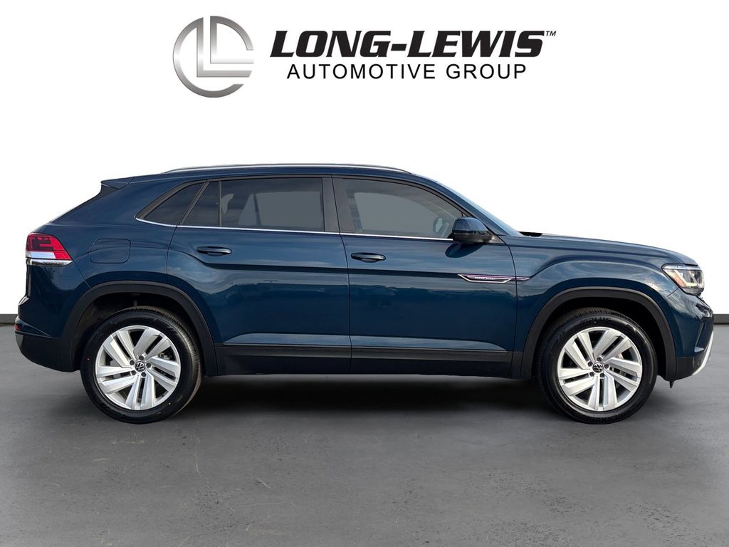 2021 Volkswagen Atlas Cross Sport 3.6L V6 SE w/Technology Tourmaline Blue Metallic 3.6L V6 SE w/Technology AWD 8-Speed Automatic with Tiptronic 3.6L VR6 3.60 Axle Ratio, 4-Wheel Disc Brakes, 6 Speakers, ABS brakes, Air Conditioning, Alloy wheels, AM/FM radio: SiriusXM with 360L, Auto-dimming Rear-View mirror, Automatic temperature control, Brake assist, Bumpers: body-color, Compass, Delay-off headlights, Driver door bin, Driver vanity mirror, Dual front impact airbags, Dual front side impact airbags, Electronic Stability Control, Emergency communication system: VW Car-Net services (capabilities require enrollment or subscription), Exterior Parking Camera Rear, Four wheel independent suspension, Front anti-roll bar, Front Bucket Seats, Front Center Armrest, Front dual zone A/C, Front fog lights, Front reading lights, Fully automatic headlights, Heated Comfort Front Bucket Seats, Heated door mirrors, Heated front seats, Illuminated entry, Leather Shift Knob, Low tire pressure warning, Occupant sensing airbag, Outside temperature display, Overhead airbag, Overhead console, Panic alarm, Passenger door bin, Passenger vanity mirror, Perforated V-Tex Leatherette Seating Surfaces, Power door mirrors, Power driver seat, Power Liftgate, Power steering, Power windows, Radio data system, Radio: MIB3 Composition Media w/8" Touchscreen, Rain sensing wipers, Rear anti-roll bar, Rear reading lights, Rear seat center armrest, Rear window defroster, Rear window wiper, Remote keyless entry, Roof rack: rails only, Security system, Speed control, Speed-sensing steering, Split folding rear seat, Spoiler, Standard Suspension, Steering wheel mounted audio controls, Tachometer, Telescoping steering wheel, Tilt steering wheel, Traction control, Trip computer, Turn signal indicator mirrors, Variably intermittent wipers, Wheels: 20" 5-Spoke Silver Alloy (CQ0).
