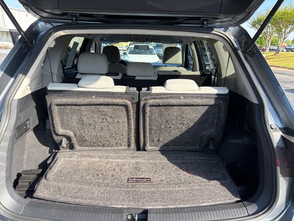 2022 Volkswagen Tiguan 2.0T S Certified. Platinum Gray Metallic 2.0T S FWD 8-Speed Automatic with Tiptronic 2.0L TSI DOHC Volkswagen Certified, 3-Row Rubber Monster Mats w/Logo Kit (Set of 5), 3.33 Axle Ratio, 3rd row seats: bench, 4-Wheel Disc Brakes, 4-Wheel Independent Suspension, 6 Speakers, ABS brakes, Air Conditioning, Alloy wheels, AM/FM radio, Brake assist, Bumpers: body-color, Cloth Seating Surfaces, Compass, Delay-off headlights, Driver door bin, Driver vanity mirror, Dual front impact airbags, Dual front side impact airbags, Electronic Stability Control, Emergency communication system: Car-Net, Exterior Parking Camera Rear, Forward collision: FCW w/Autonomous Emergency Braking mitigation, Four wheel independent suspension, Front anti-roll bar, Front Bucket Seats, Front Center Armrest, Front reading lights, Fully automatic headlights, Heated door mirrors, Heated Front Bucket Seats, Heated front seats, Heavy Duty Trunk Liner w/VW CarGo Blocks, Illuminated entry, Leather Shift Knob, Low tire pressure warning, Occupant sensing airbag, Outside temperature display, Overhead airbag, Overhead console, Panic alarm, Passenger door bin, Passenger vanity mirror, Power door mirrors, Power steering, Power windows, Radio data system, Radio: Composition Color AM/FM, Rear anti-roll bar, Rear reading lights, Rear seat center armrest, Rear window defroster, Rear window wiper, Remote keyless entry, Roof rack: rails only, Speed control, Speed-sensing steering, Split folding rear seat, Spoiler, Steering wheel mounted audio controls, Tachometer, Telescoping steering wheel, Tilt steering wheel, Traction control, Trip computer, Turn signal indicator mirrors, Variably intermittent wipers, Wheels: 17" 2-Tone Machined Twin 5-Spoke Alloy.
